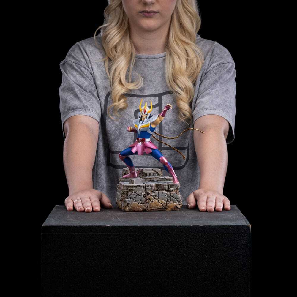 Noble, complexe et mûr, toujours prêt à sacrifier sa vie pour ses amis, le plus puissant et le plus fougueux des Chevaliers de Bronze se dresse sur les marches de pierre du Sanctuaire d'Athéna, la déesse protectrice du monde des hommes qu'il sert et protège fidèlement. Prêt au combat, il a éveillé son septième sens, ce qui le place au même rang que les Chevaliers d'Or et les Juges d'Hadès en termes de puissance et d'habileté. Iron Studios présente fièrement la statue « Phoenix Ikki - Les Chevaliers du Zodiaque - Art Scale 1/10 », représentant le Chevalier qui, à l'image de l'oiseau légendaire auquel il est associé, gagne en puissance à chaque mort et renaissance, sur un socle formé par les marches effondrées du Sanctuaire. Iron Studios propose également la version Deluxe « Phoenix Ikki - Les Chevaliers du Zodiaque - Art Scale Deluxe 1/10 », sur un socle représentant l'avatar de l'oiseau mythique immortel renaissant de ses cendres et nommant la constellation qu'il représente.