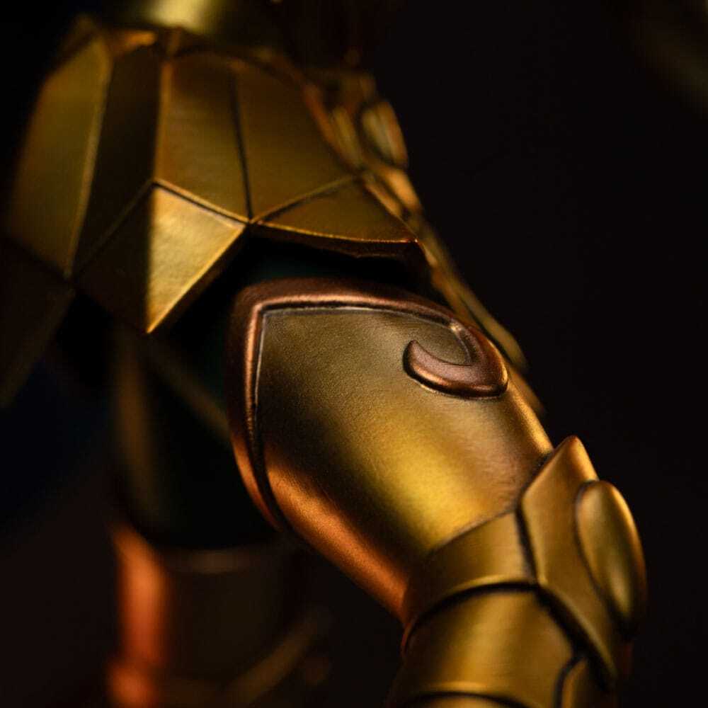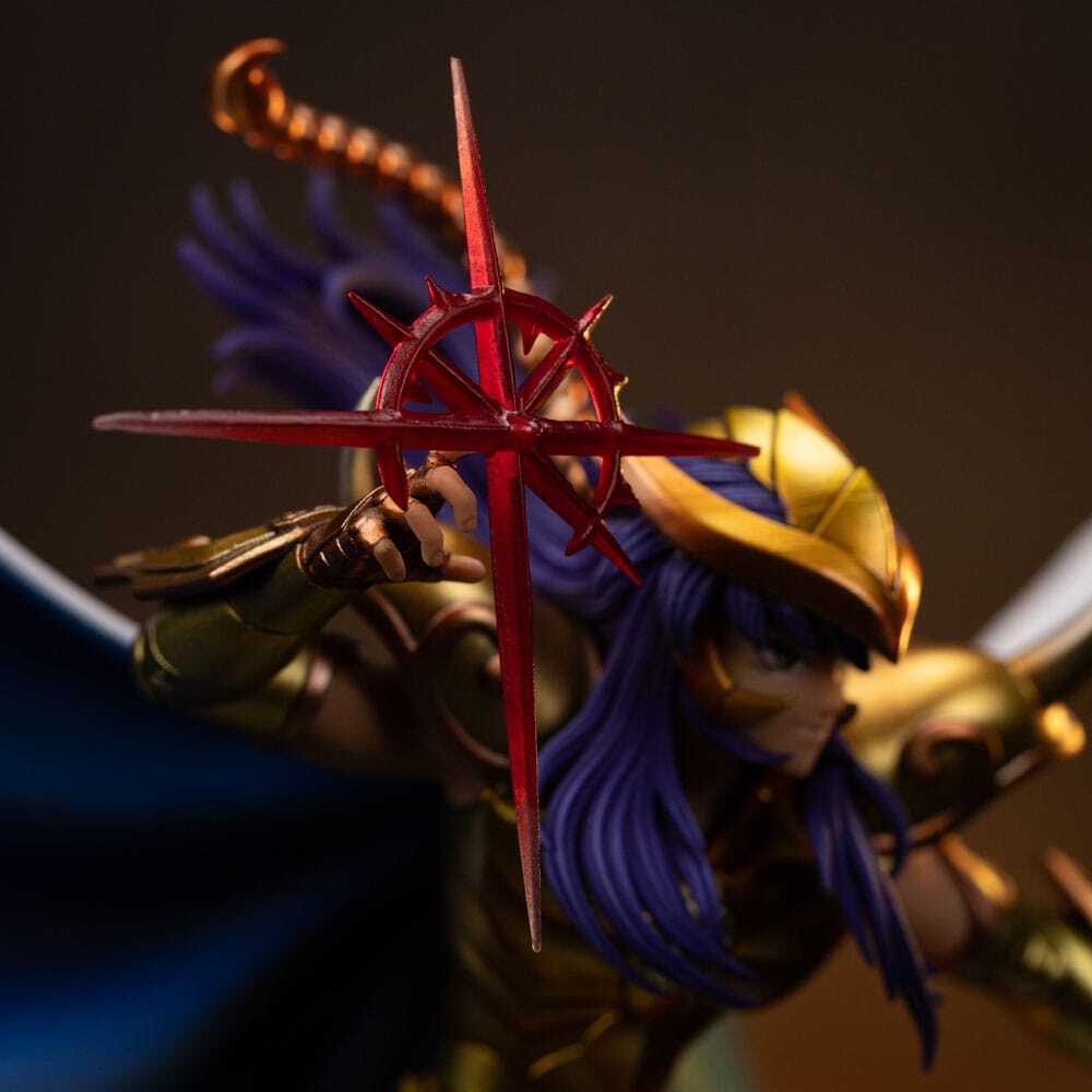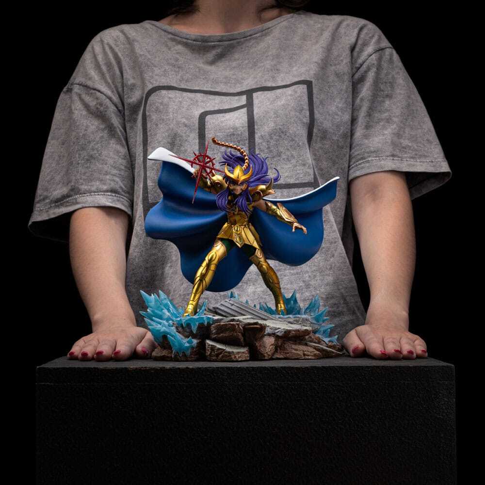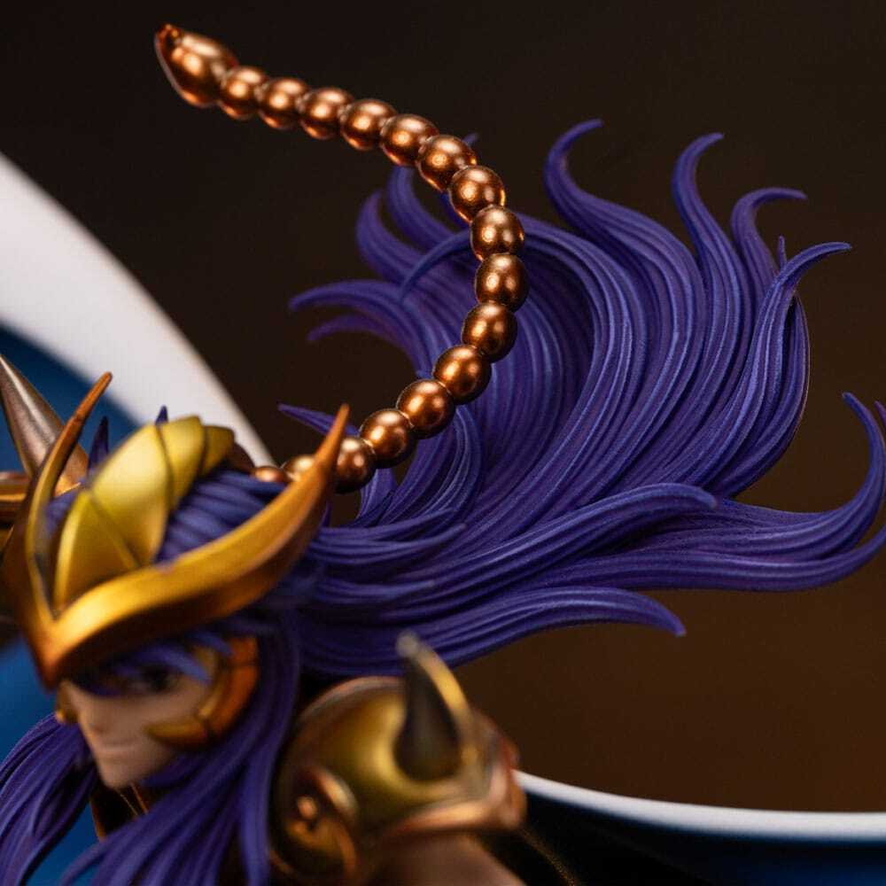 Cette statue est sous licence officielle et sera produite en édition limitée. Le socle présente des détails minutieux fidèles aux références originales de la série, donnant vie au légendaire Chevalier d'Or du Scorpion.