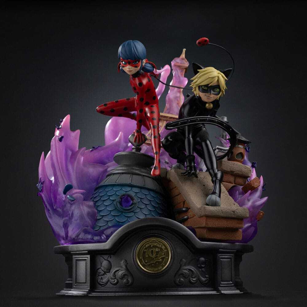 Figurine Art Scale Deluxe Lady Bug Et Chat Noir 23Cm, Signée - Iron Studios Miraculous