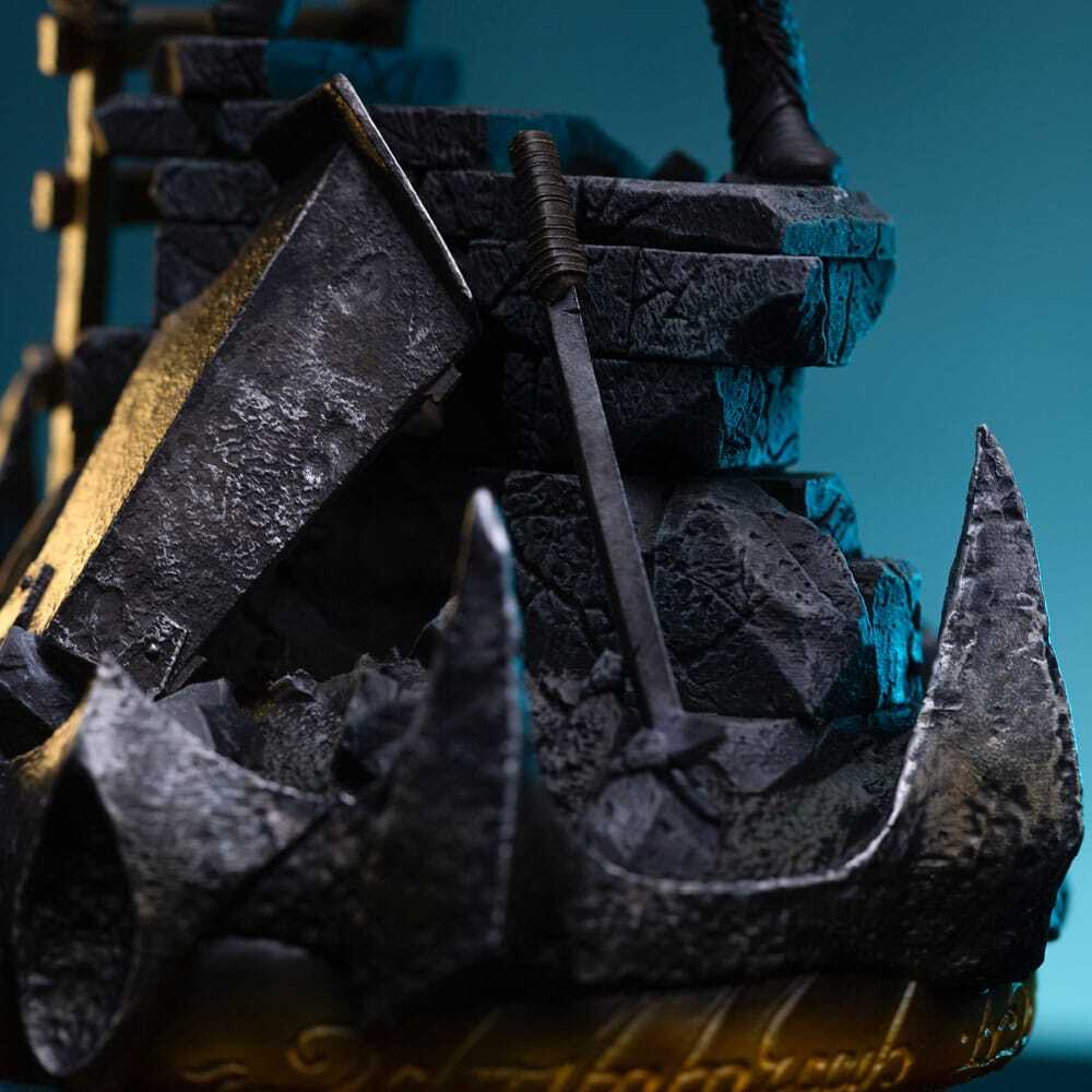 Statuette en résine à l'échelle 1/10, dimensions approximatives de 29 cm sur socle, sous licence officielle.