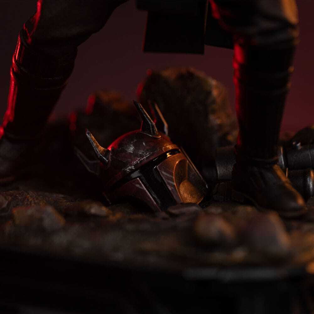 Statuette en résine à l'échelle 1/10, dimensions approximatives 21 x 17 x 14 cm sur socle, sous licence officielle.