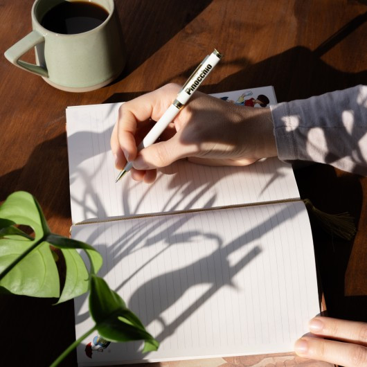 Quel beau cahier Pinocchio. Je l'adore absolument. Belle exécution. Et le stylo est également top.