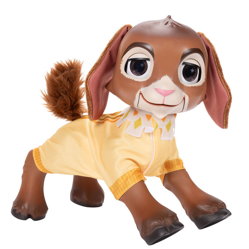 Donnez à Valentino la capacité de parler avec le Magical Moving & Talking Disney Valentino. Recréez le moment magique du film d'animation Disney Wish lorsque Star réalise le vœu de Valentino. Caressez Valentino sur la tête ou le dos et l'ami espiègle d'Asha répondra par un baaah. Vivez la magie qui prend vie lorsque vous tenez Star près de la joue de Valentino et que son vœu se réalise. Donnez à Valentino une carotte ou une ficelle et il dira plus de phrases et bougera même aussi.