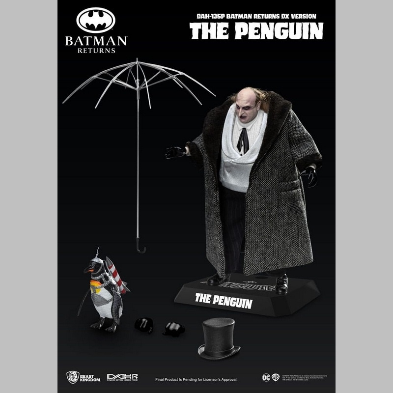 Le Pingouin DX, le célèbre méchant de Gotham de Batman Returns (1992), prend vie dans cette figurine Deluxe Dynamic Action Heroes de 17 cm. Capturant sa ruse, son charme sinistre et sa personnalité théâtrale, cette édition Deluxe ajoute l'emblématique Pingouin à votre collection avec des détails et des accessoires supplémentaires.
