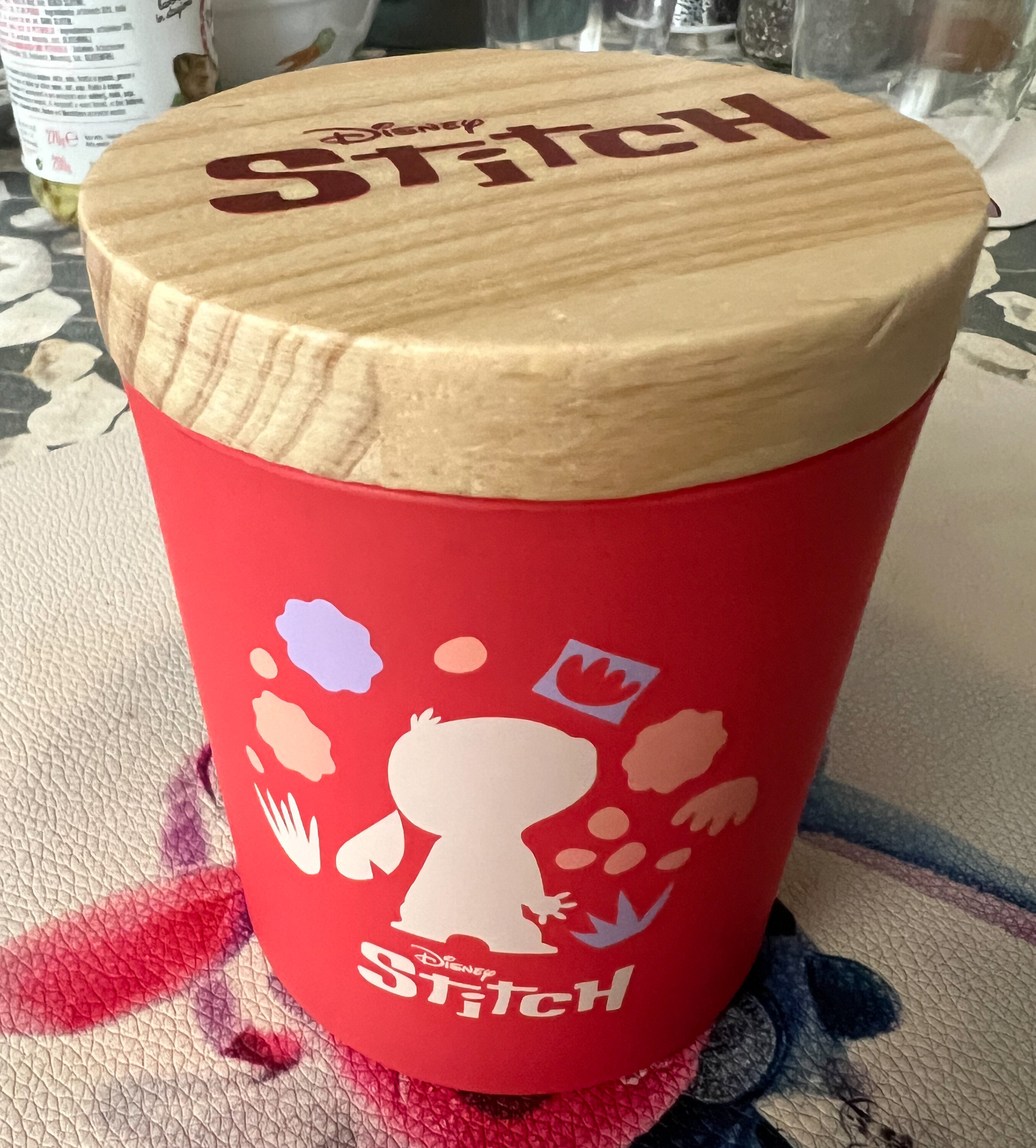 Présentée dans un élégant récipient en verre rose orné d'une silhouette espiègle de Stitch, la bougie est dotée d'un couvercle charmant et est accompagnée d'un coffret cadeau assorti, ce qui en fait le complément idéal de toute collection Disney.