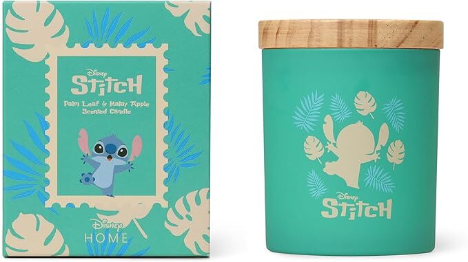 Présentée dans un élégant récipient en verre bleu turquoise orné d'une silhouette ludique de Stitch, la bougie possède un couvercle à motifs et est accompagnée d'un coffret cadeau assorti. C'est le cadeau idéal pour compléter la collection de tout fan de Disney.