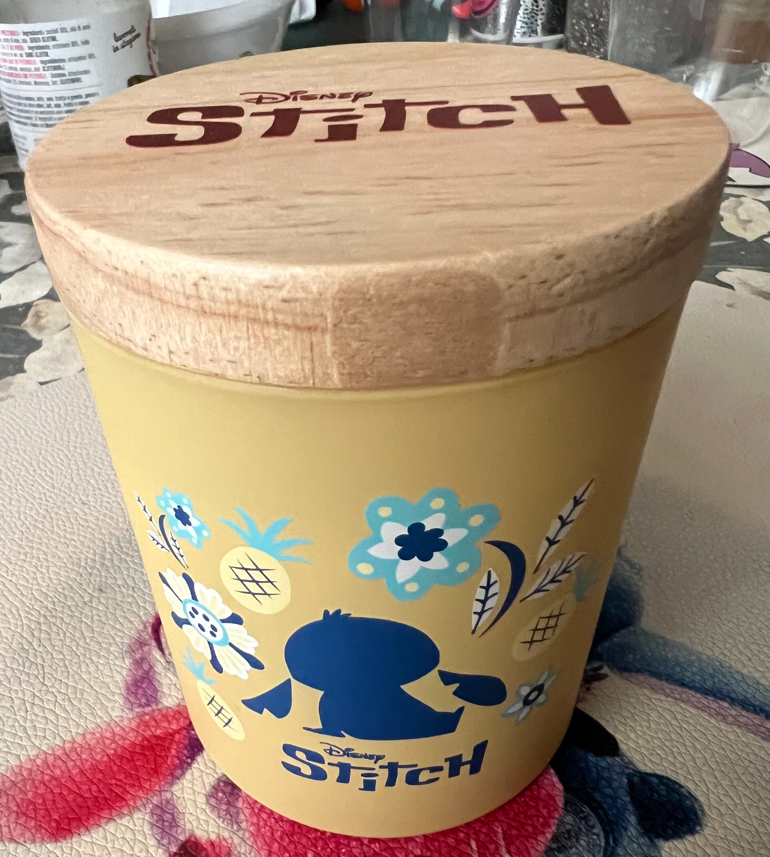 Présentée dans un élégant pot en verre jaune orné d'une silhouette ludique de Stitch , la bougie est dotée d'un couvercle charmant et est accompagnée d'une boîte cadeau jaune assortie, ce qui en fait le complément idéal de toute collection Disney.