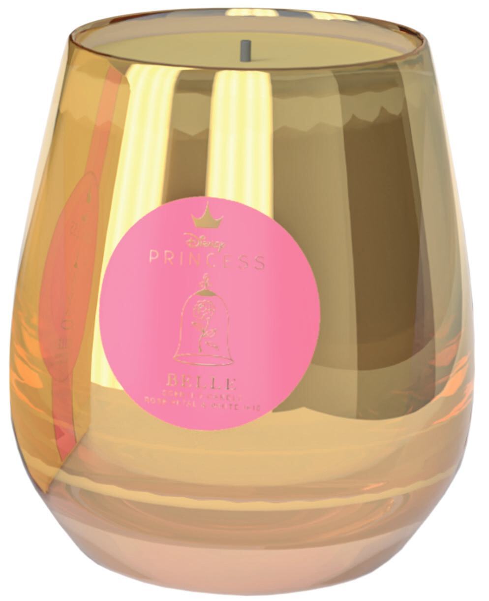 Bougie En Verre Disney Belle Avec Pétale De Rose Et Iris Blanc