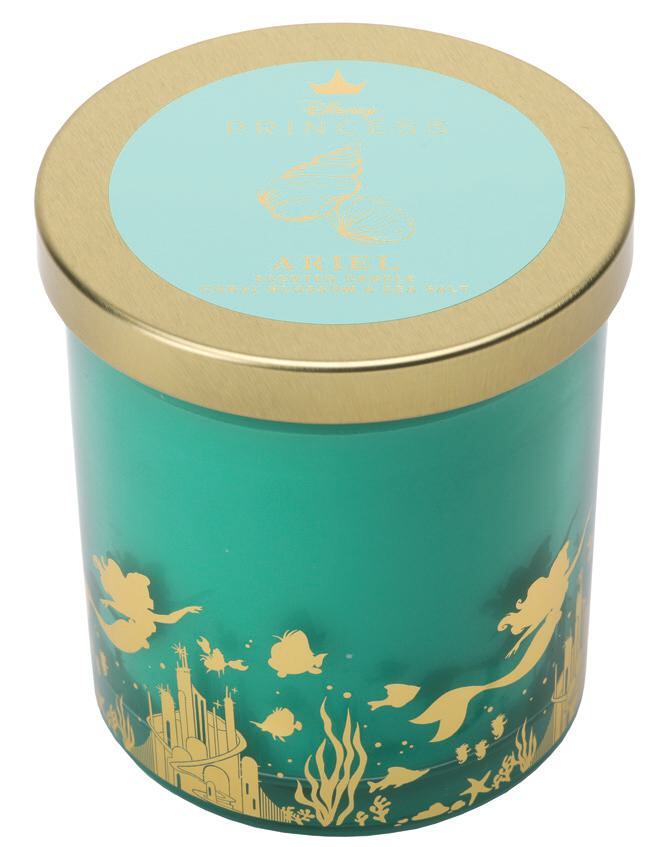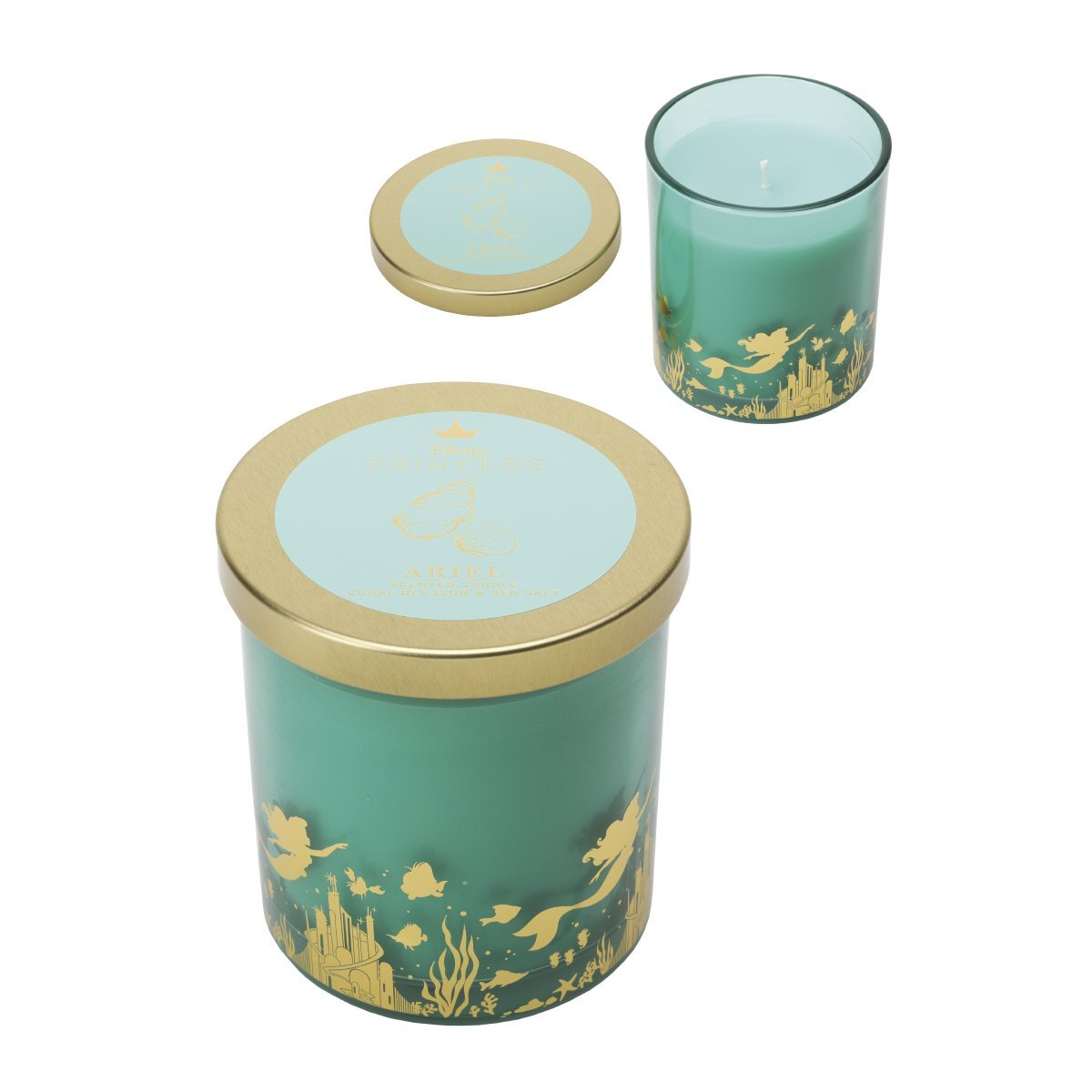 Bougie En Verre Disney Ariel Avec Couvercle, Fleur De Corail Et Sel Marin