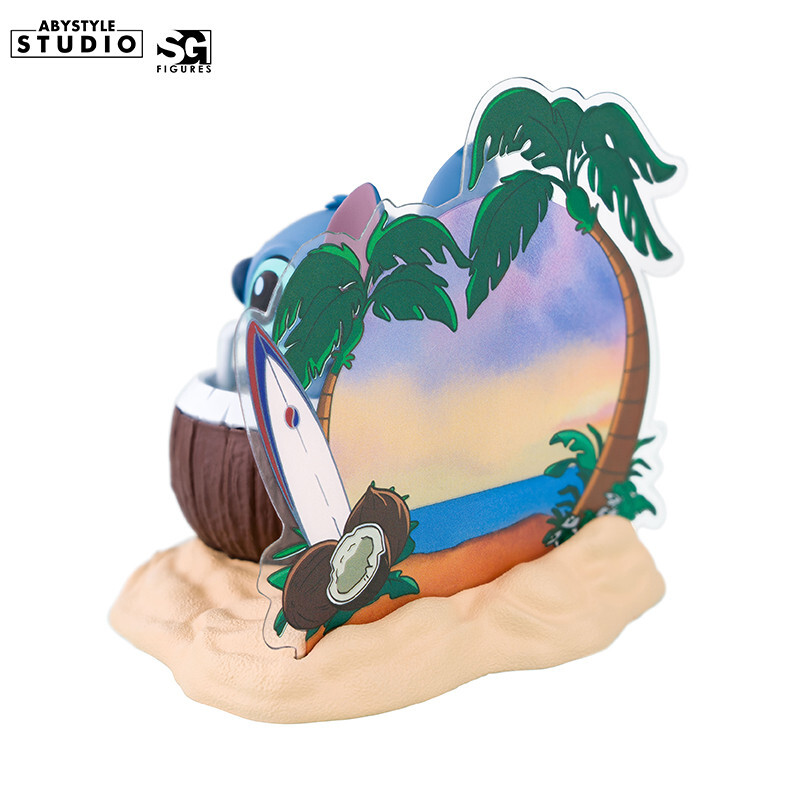 Cette adorable figurine représente Stitch confortablement installé dans une demi-noix de coco, comme s'il sirotait un cocktail tropical. Avec son expression espiègle, ses grandes oreilles dressées et sa pose décontractée, il incarne toute la joie et l'humour de l'univers Disney. Les détails minutieux de la coquille, du sable et des couleurs vives évoquent une scène de vacances irrésistible. C'est une pièce pleine de gaieté, parfaite pour égayer une étagère ou un bureau. Un mélange parfait de mignonnerie et de fantaisie, cette version estivale de Stitch fera fondre les cœurs.