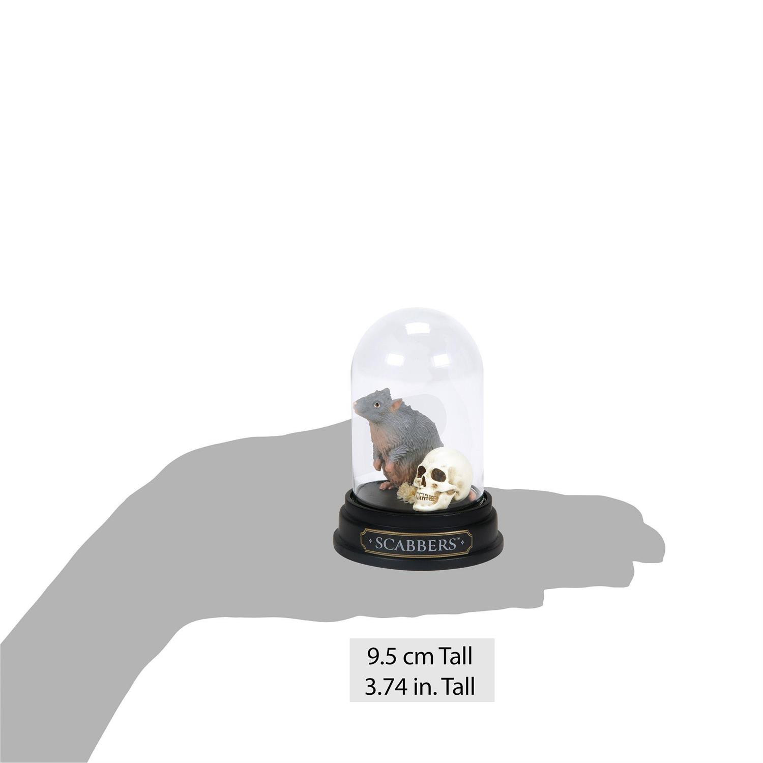 Dans le monde des sorciers, un animagus est un sorcier ou une sorcière ayant la capacité de se transformer en animal et de reprendre forme humaine. Peter Pettigrow, l'un des plus fidèles serviteurs de Voldemort, possède ce don et se cache sous l'apparence du rat de compagnie de Ron, Croûtard. Cette figurine miniature, minutieusement sculptée et peinte à la main, ainsi que le crâne, sont présentés sous un dôme de verre transparent, évoquant les facéties du rongeur infiltré. Le tout est emballé dans un emballage entièrement marqué.