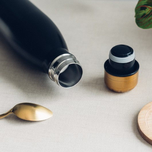La bouteille en acier inoxydable à double paroi garde votre boisson chaude pendant 12 heures et froide pendant 24 heures. Comprend un bouchon hermétique.