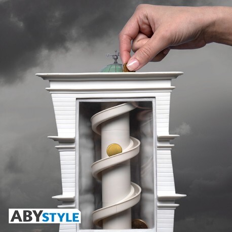 Gardez votre argent en sécurité dans la banque des sorciers la plus célèbre et la plus sûre : Gringotts ! Glissez des gallions, des mornilles et des noises dans cette tirelire Harry Potter signée ABYstyle et regardez les pièces glisser jusqu'aux coffres souterrains de la banque. Mais attention aux gobelins, ils vous surveillent !
