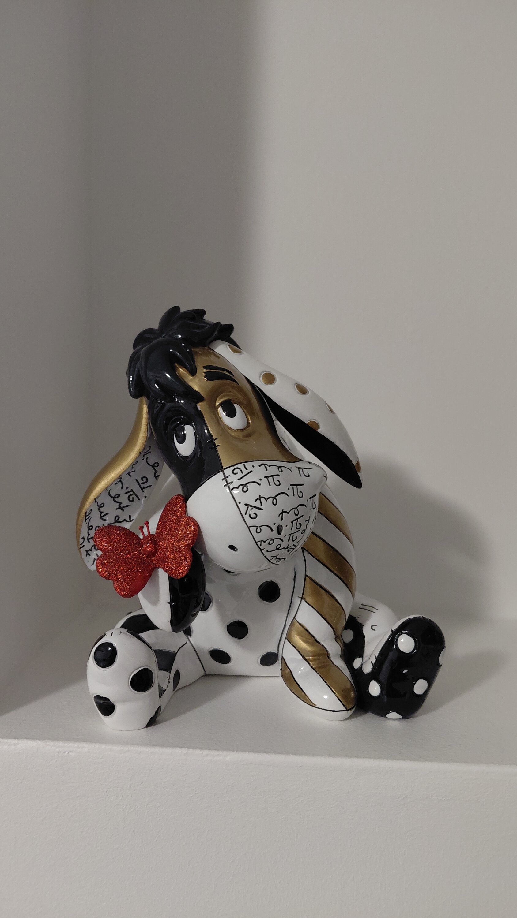 Pour célébrer le centenaire de Winnie l'Ourson, Bourriquet se pare des Midas de l'artiste pop Romero Britto dans cette nouvelle sculpture. Votre âne préféré est mis en scène dans des tons or, noir, rouge rubis et blanc brillant. Disponibilité limitée.