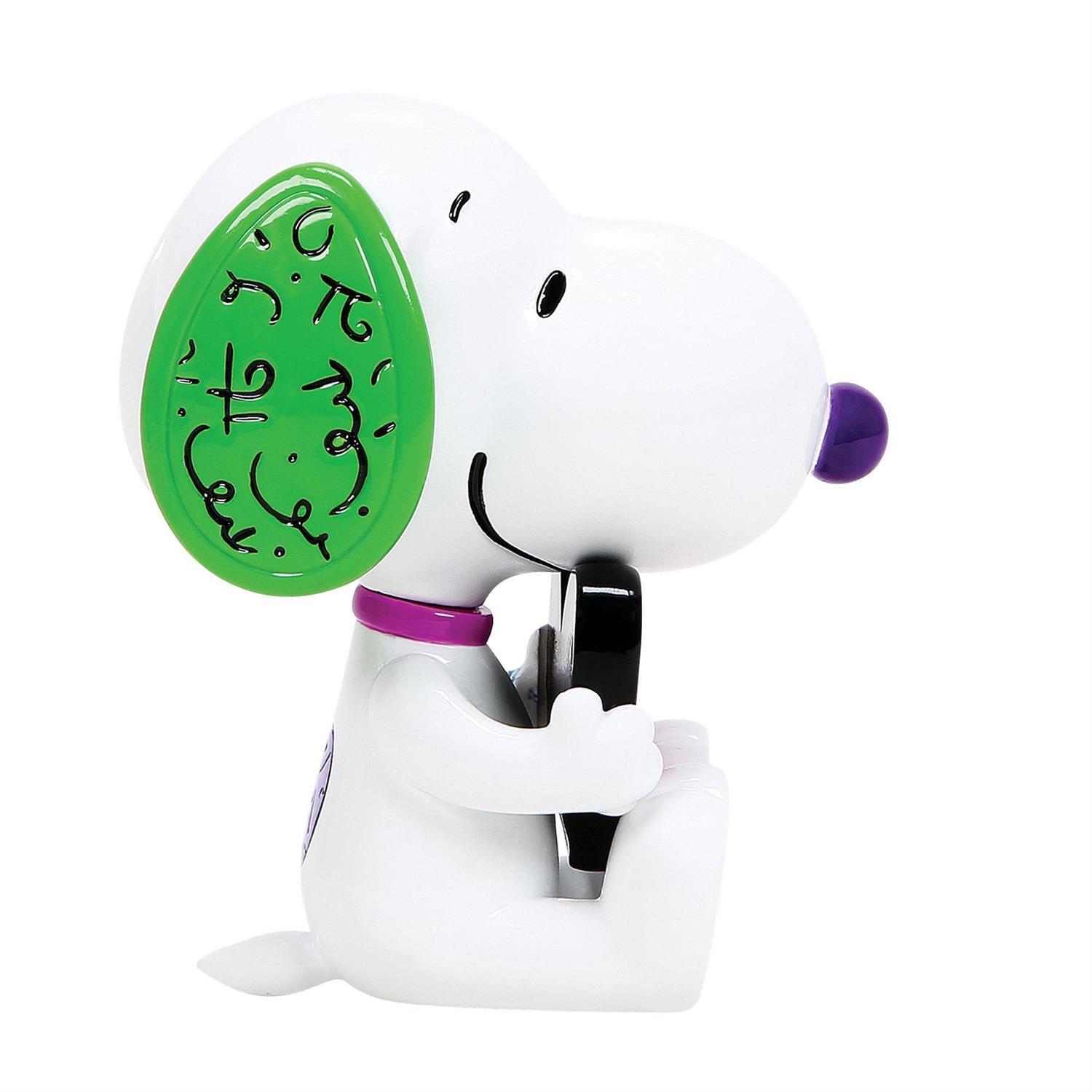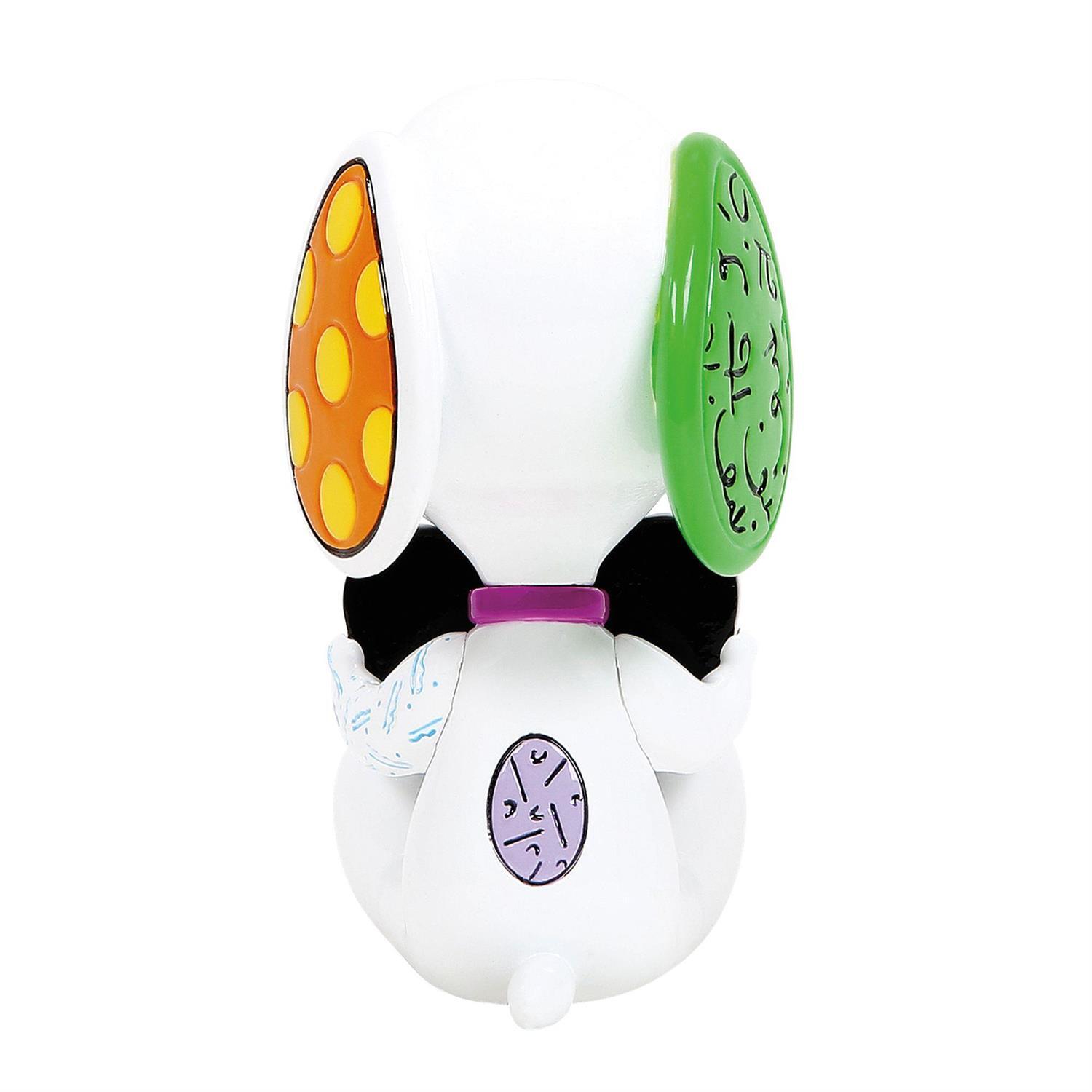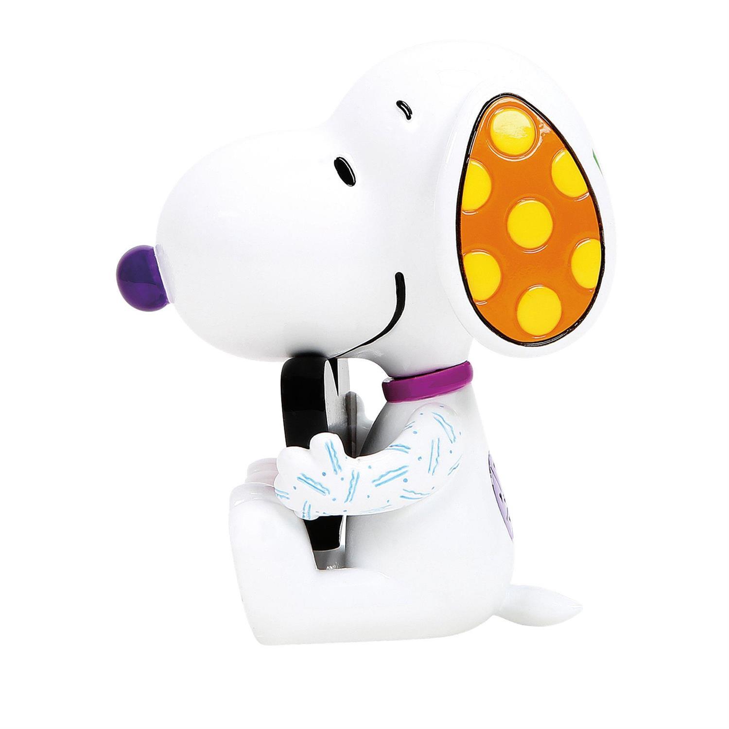 Petit par la taille, mais grand par le design. Ce mini Snoopy tient un cœur Britto et incarne la joie et le bonheur. Présenté dans une boîte-fenêtre.