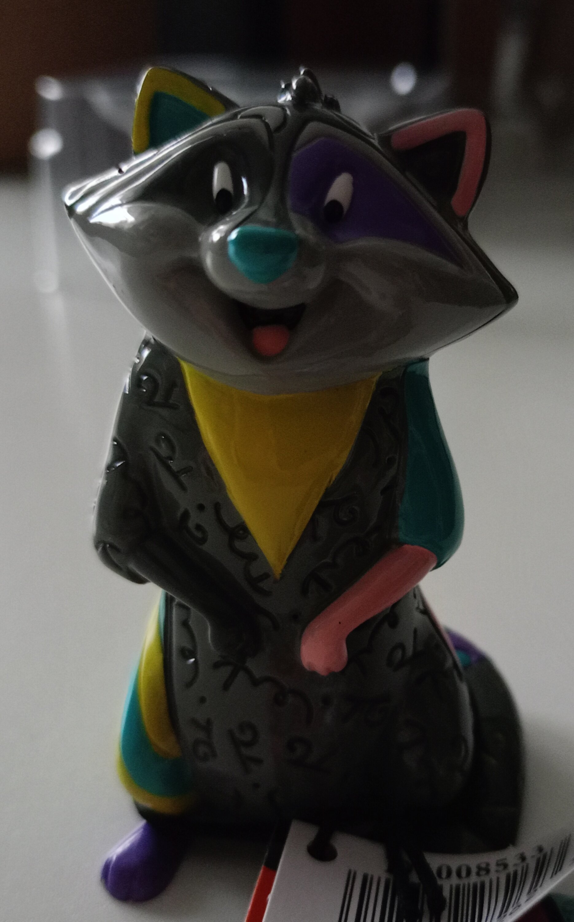 Le raton laveur Meeko de Pocahontas reçoit un style pop art vibrant de l'artiste de renommée internationale Romero BRITTO dans cette figurine de collection miniature.