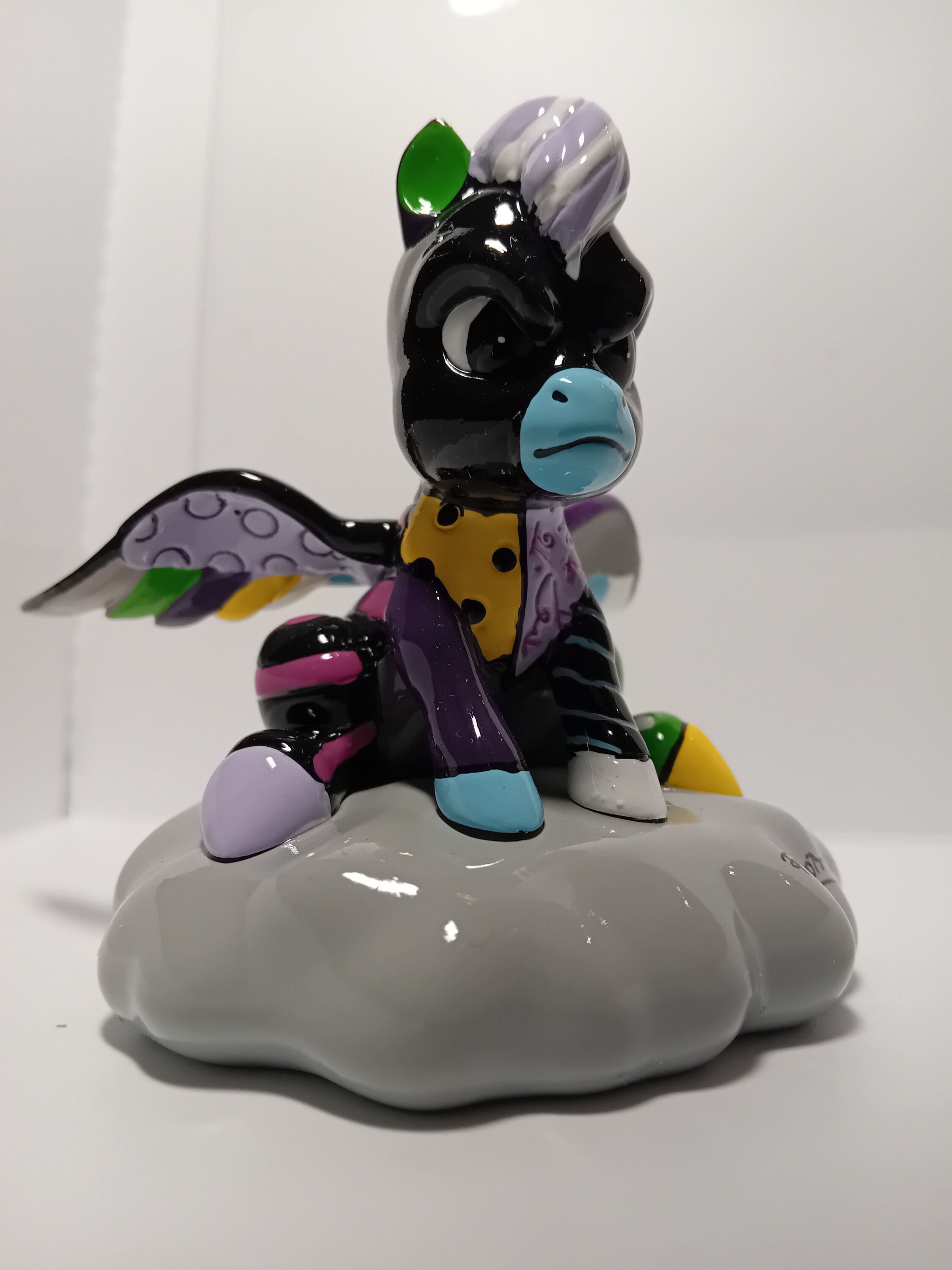 Tiré du chef-d'œuvre Fantasia de Walt Disney, le petit Pégase noir semble un peu moins grincheux lorsqu'il est réimaginé dans le style pop art de Romero Britto.