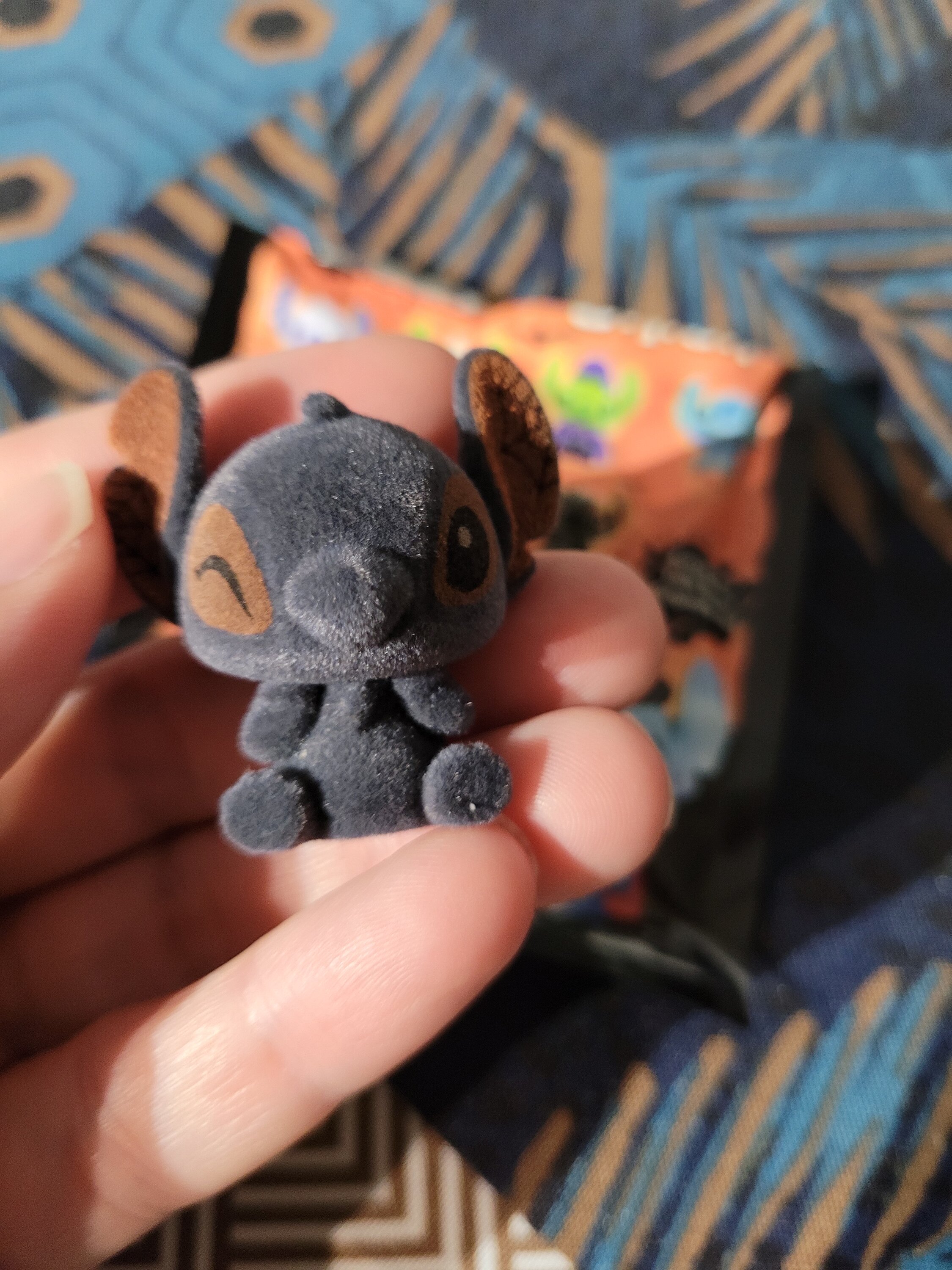 Wir hatten diesen süßen lila Stich drin. Finden die Überraschungssäckchen so toll.