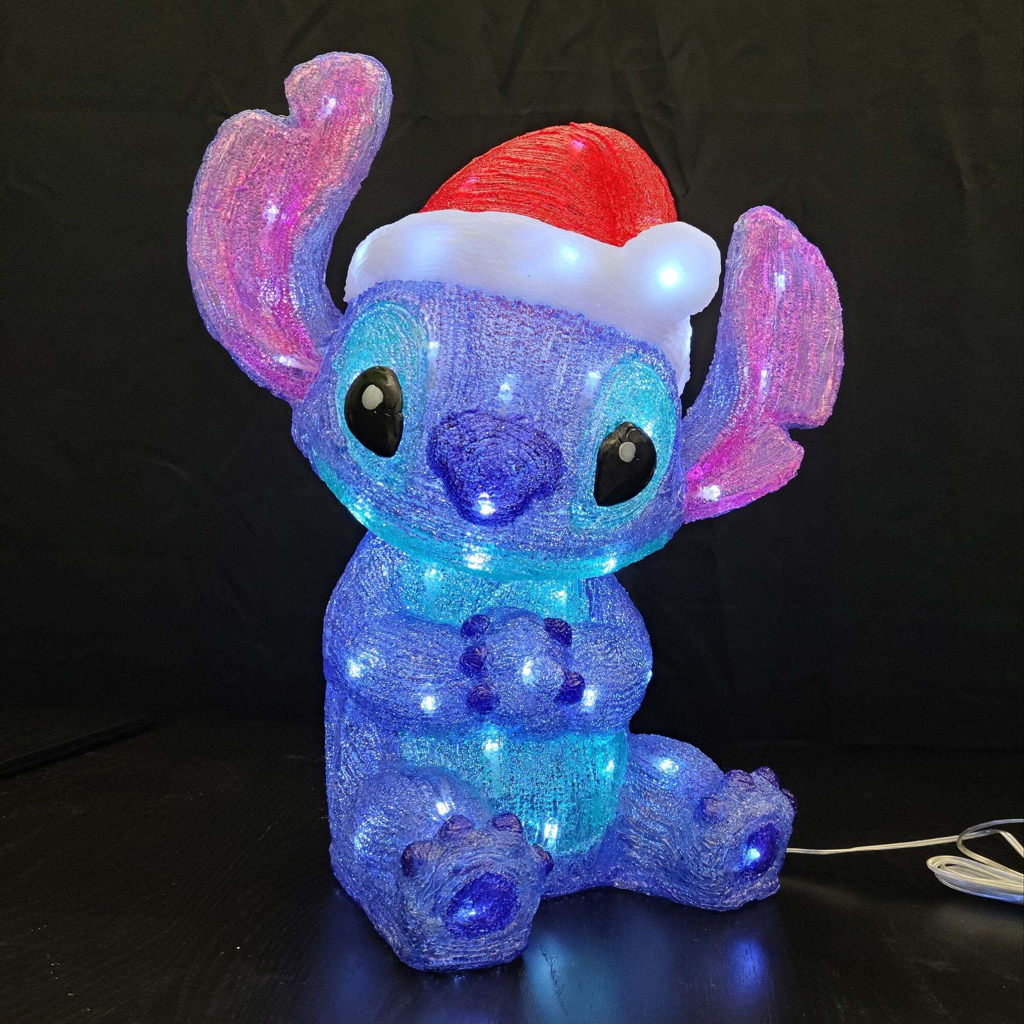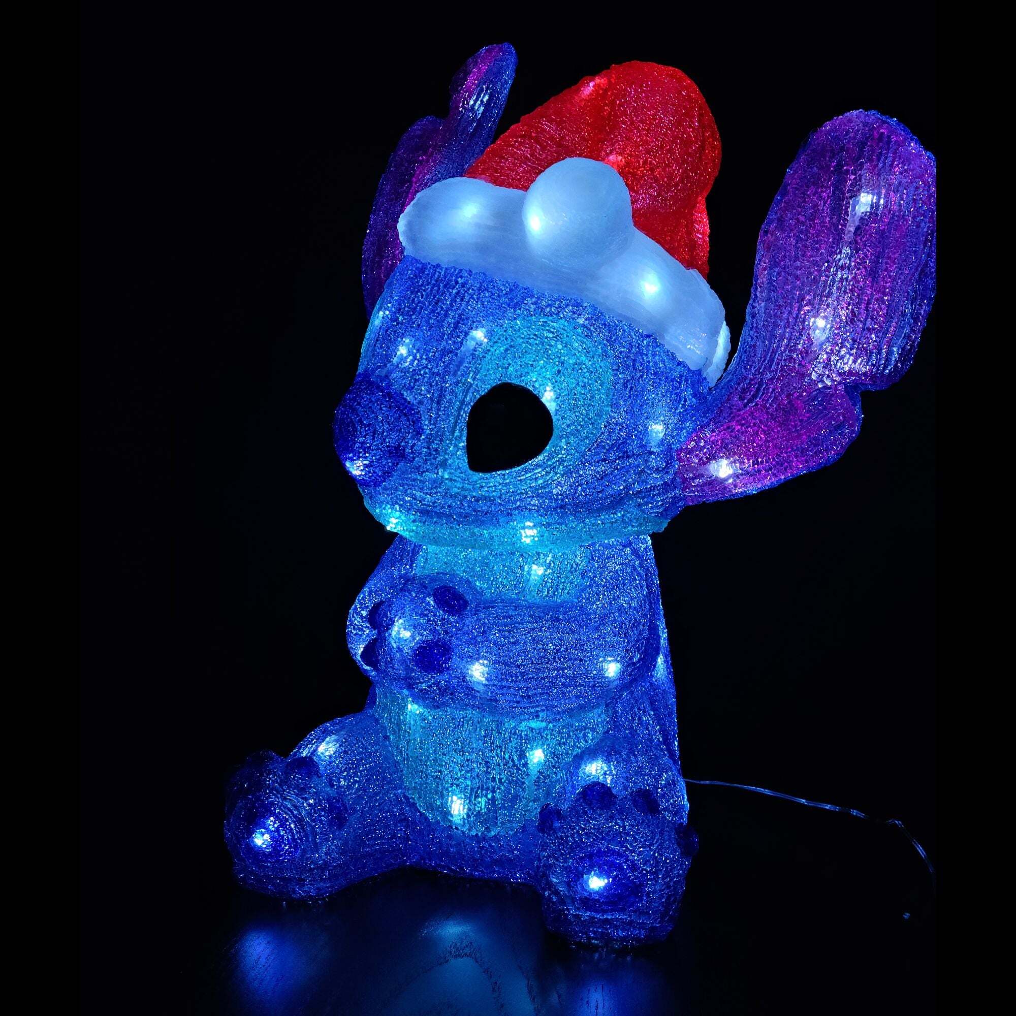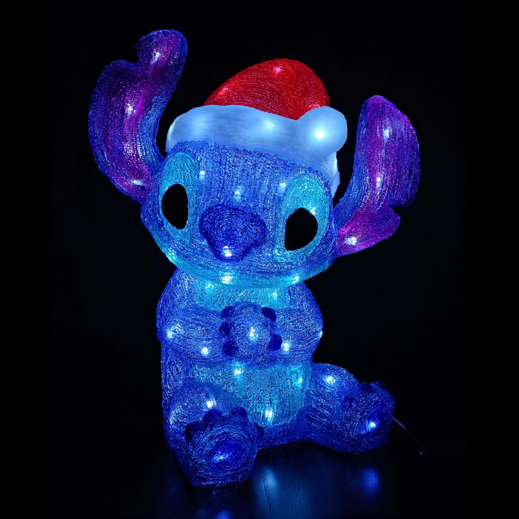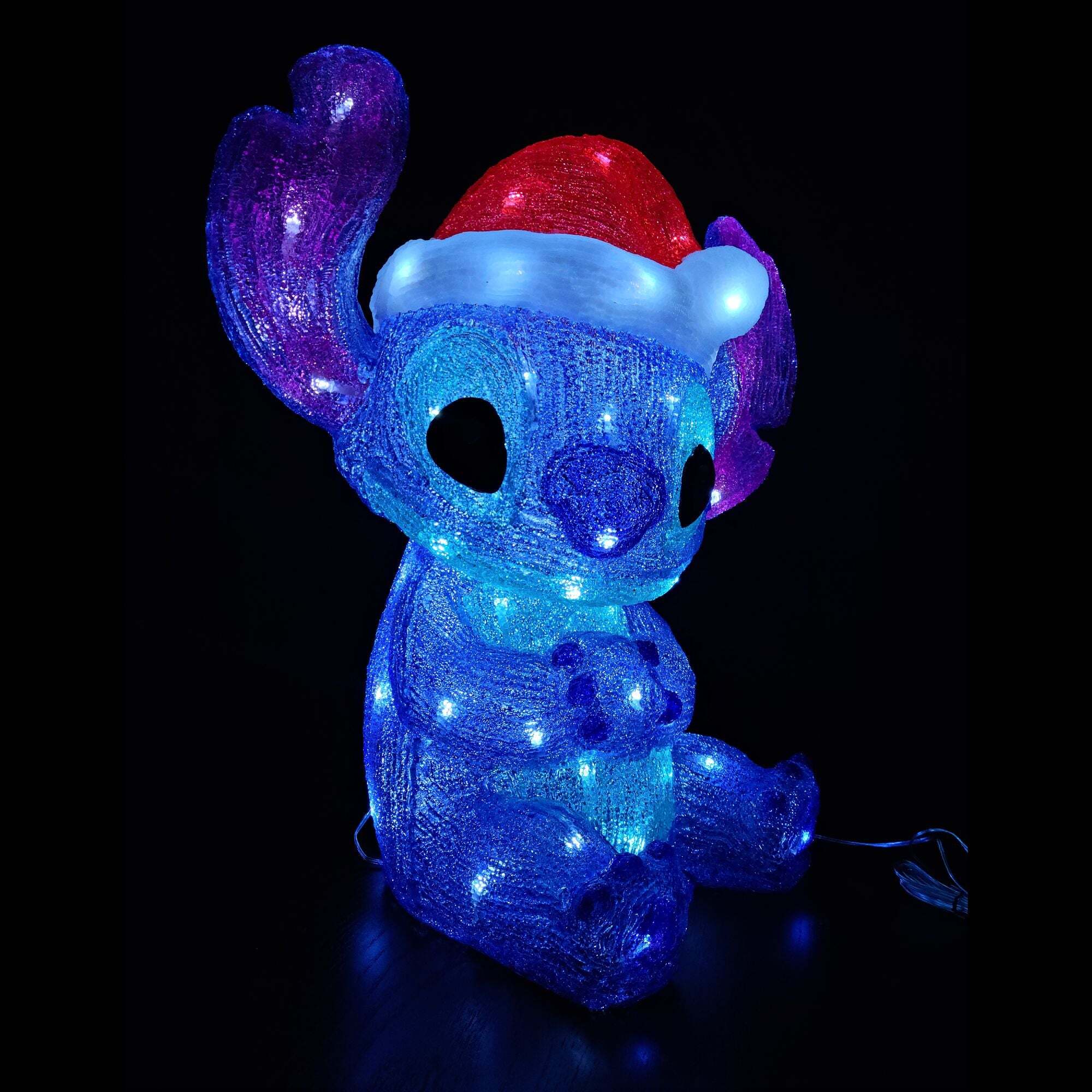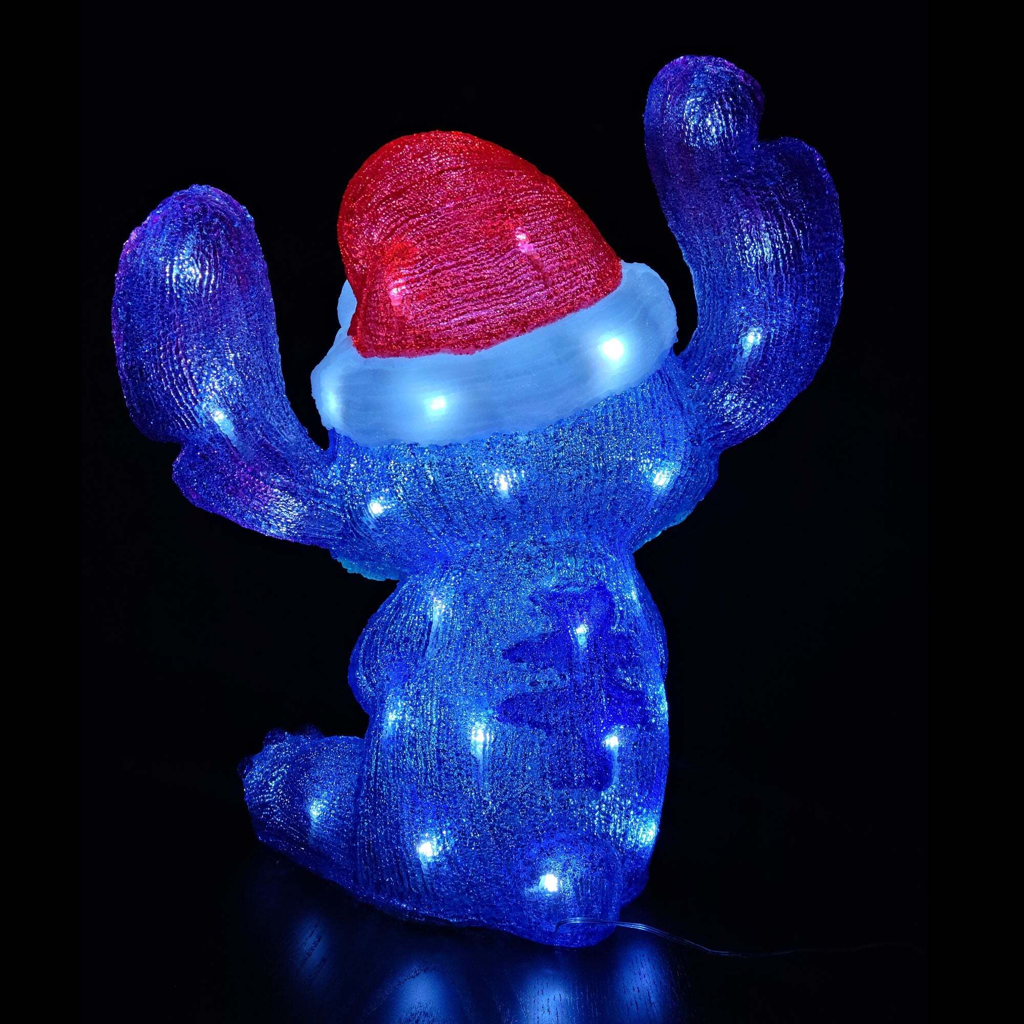 Stitch et son chapeau festif s'intègrent parfaitement à l'esprit des fêtes et apporteront une touche de gaieté à votre maison ou à votre véranda grâce à cette décoration lumineuse en acrylique. Idéale pour égayer vos fêtes, elle se branche facilement sur une prise étanche pour un effet magique tout au long des fêtes. Adaptateur secteur inclus.