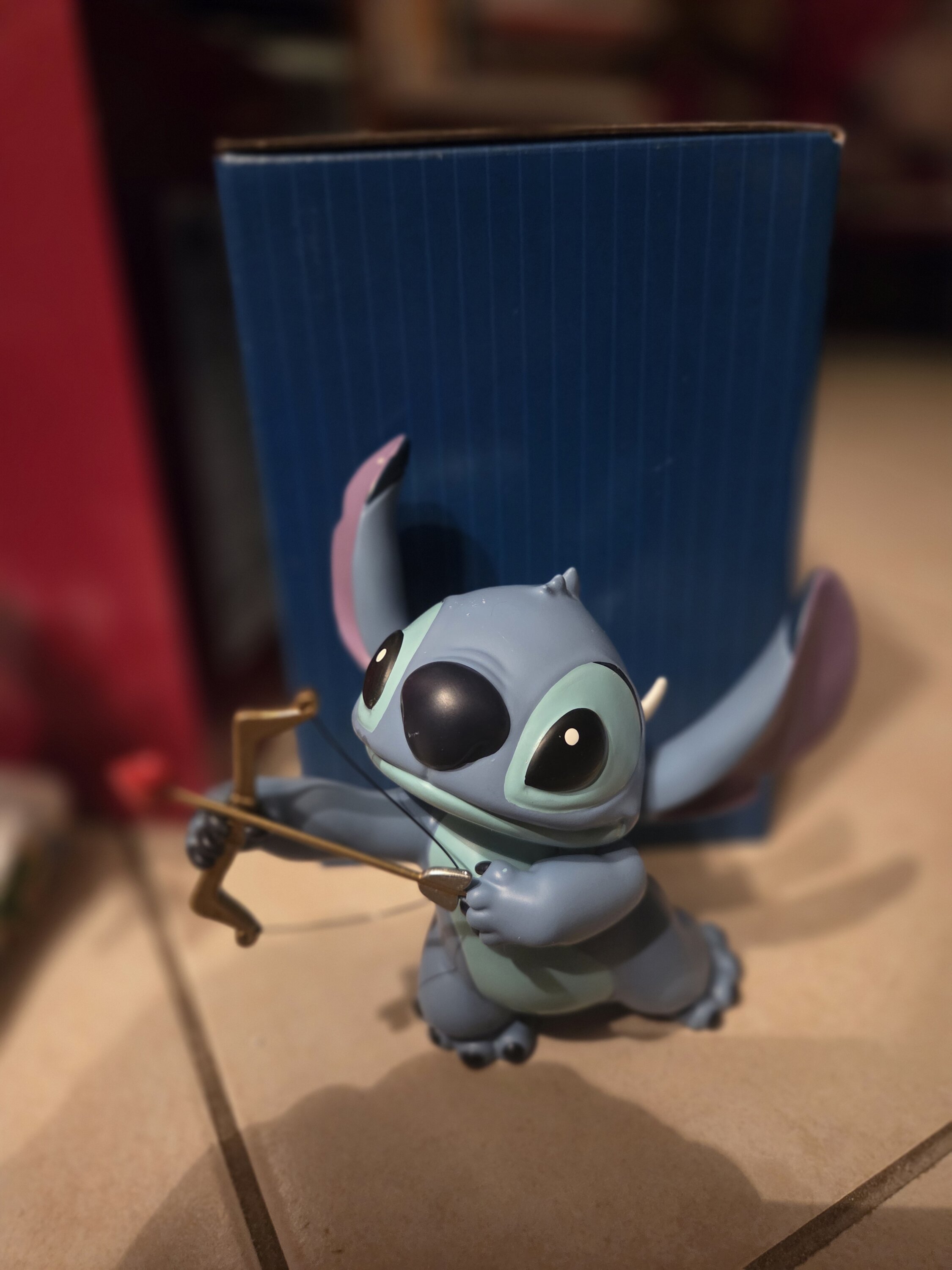 Célébrez les fêtes avec l'expérience spatiale préférée de tous, Stitch. Fabriqué et peint à la main, Stitch tirera sur vos cordes cardiaques habillé en Cupidon juste à temps pour célébrer la Saint-Valentin avec votre bien-aimé.