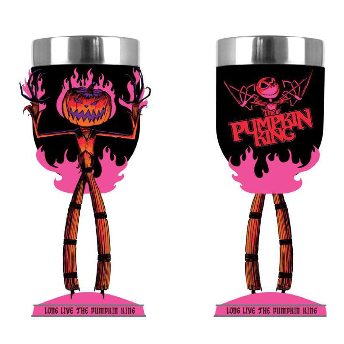 Voici le Calice officiel Halloween Town ! Célébrez vos fêtes avec style grâce à ce calice décoratif en acier inoxydable, orné de l'image effrayante du Roi Citrouille. Idéal pour tous les fans de L'étrange Noël de Monsieur Jack. Fabriqué à la main et peint avec soin, il est livré emballé dans un coffret cadeau. Ce produit est destiné aux adultes uniquement et n'est pas un jouet ou un produit pour enfants.