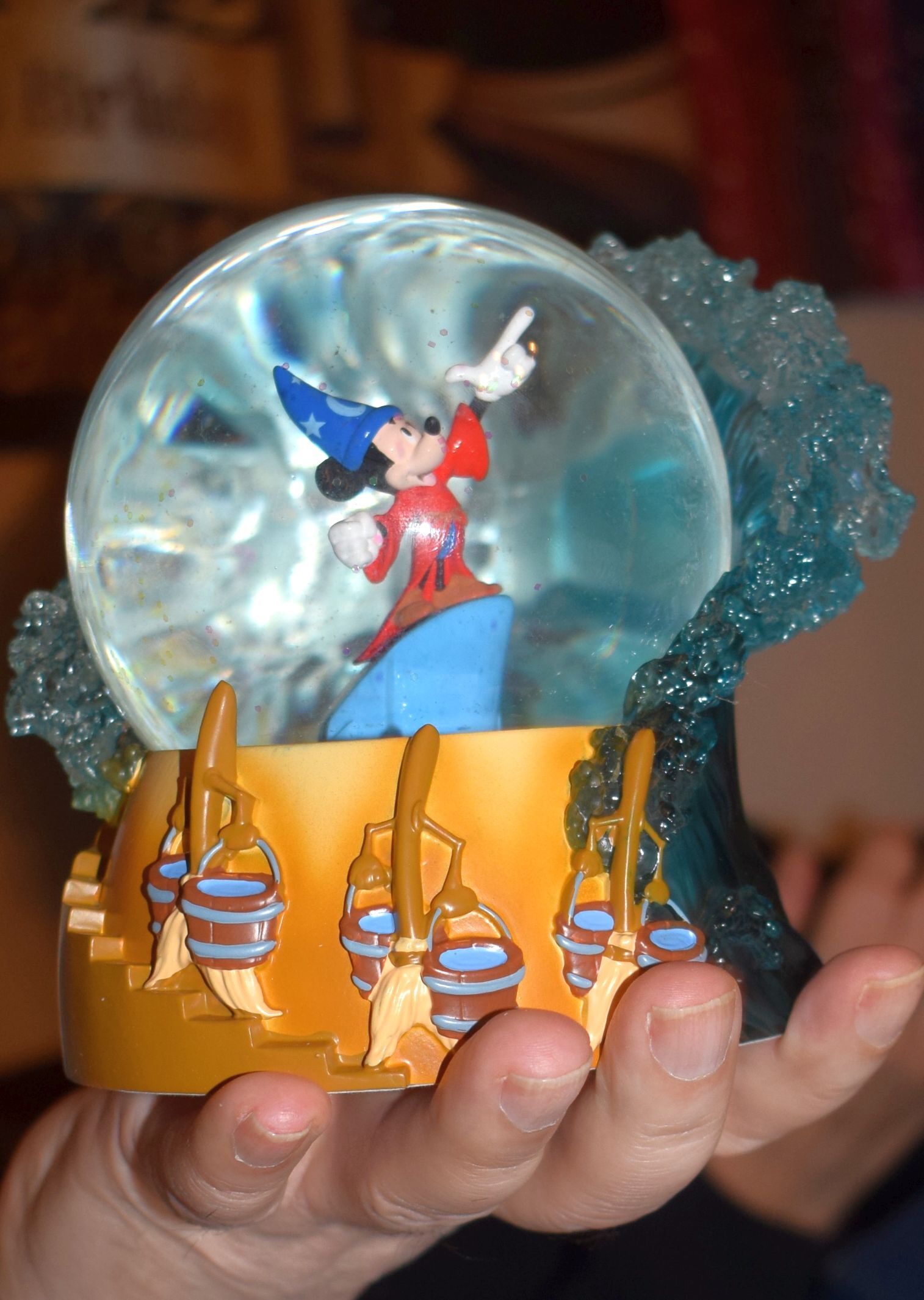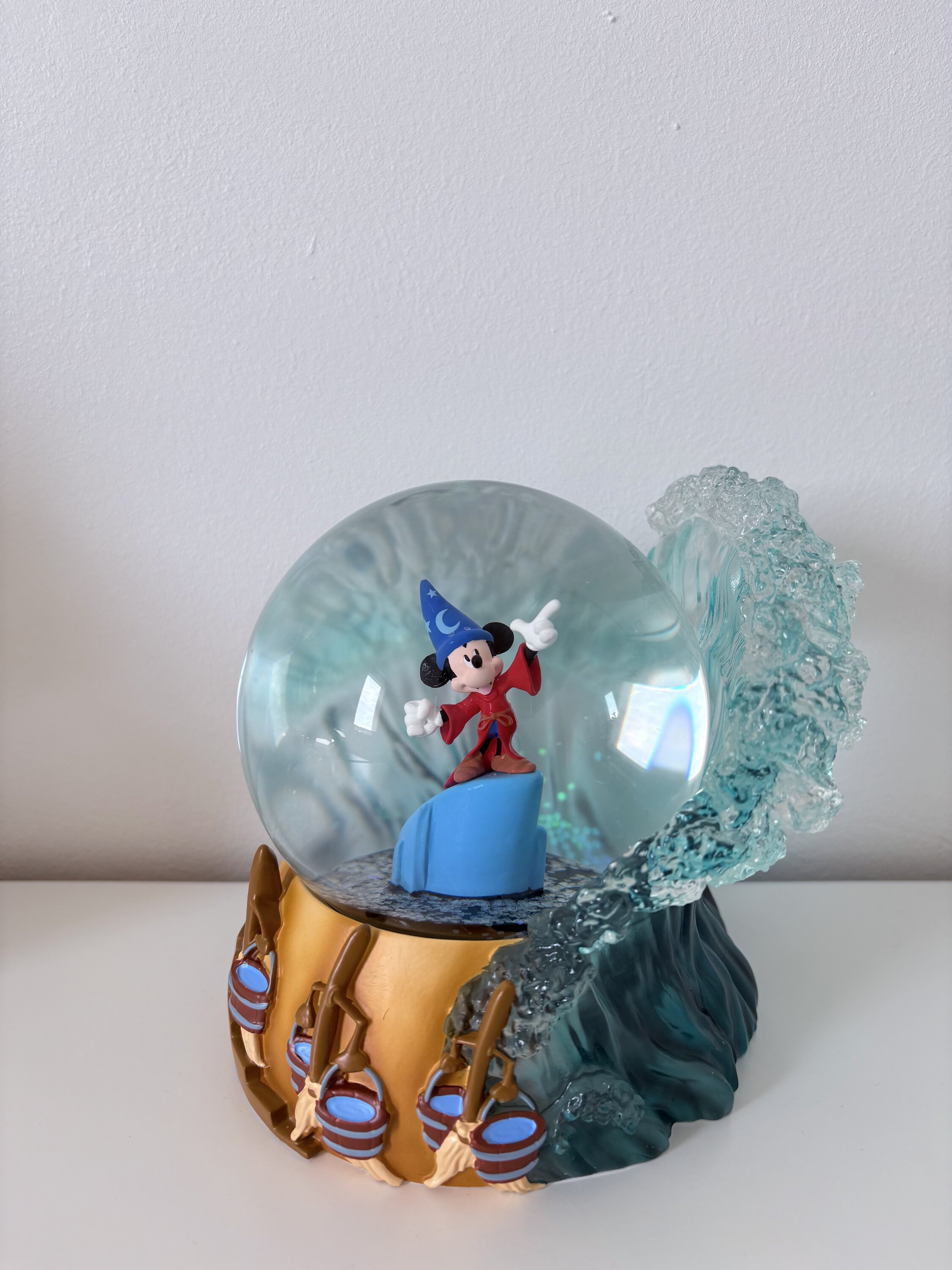 Célébrez le 85e anniversaire du chef-d'œuvre animé de Walt Disney Fantasia avec ce globe d'eau de 100 mm représentant l'apprenti sorcier Mickey Mouse alors qu'il commande l'eau avec des balais magiques et des vagues déferlantes en résine transparente.