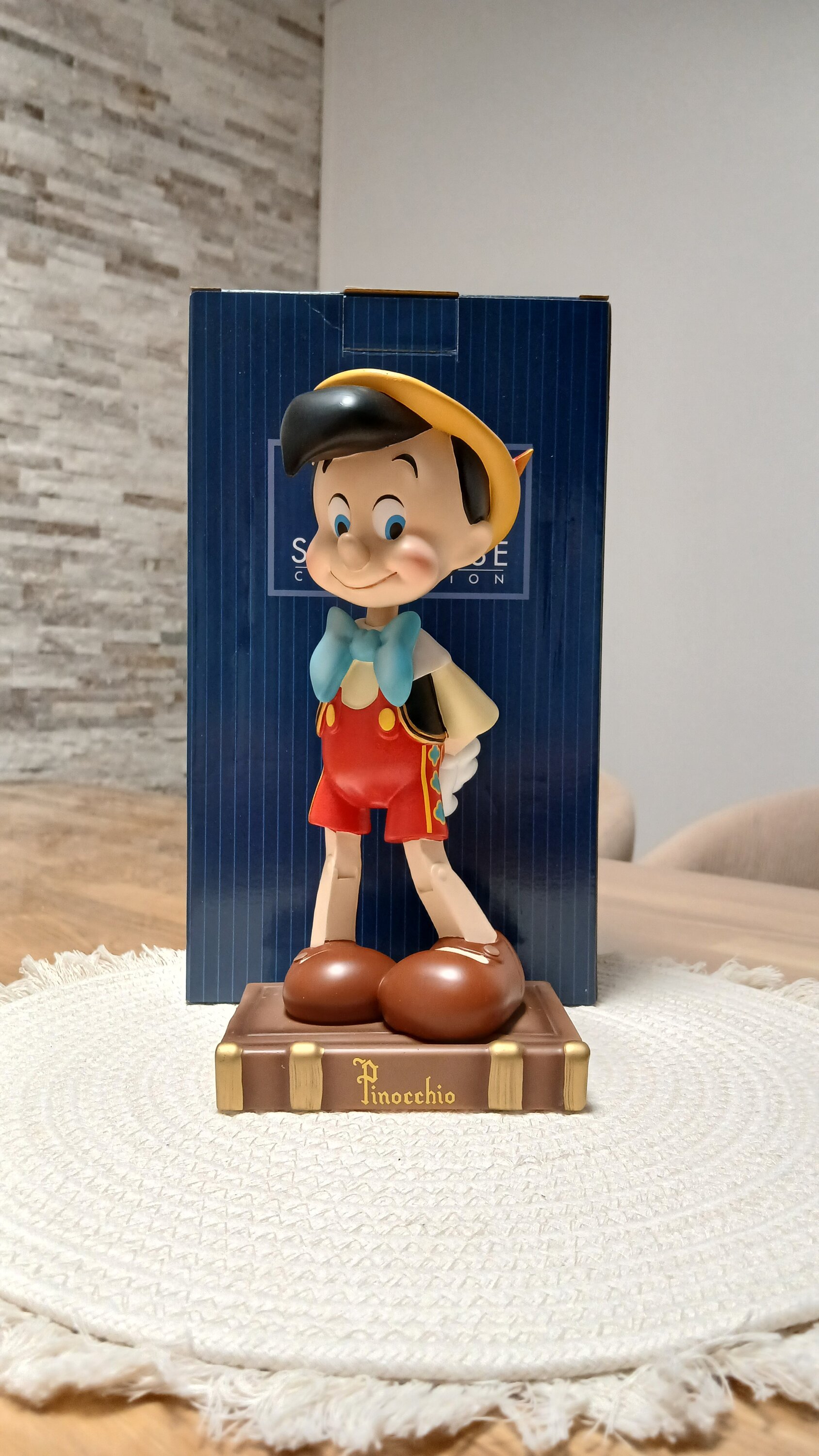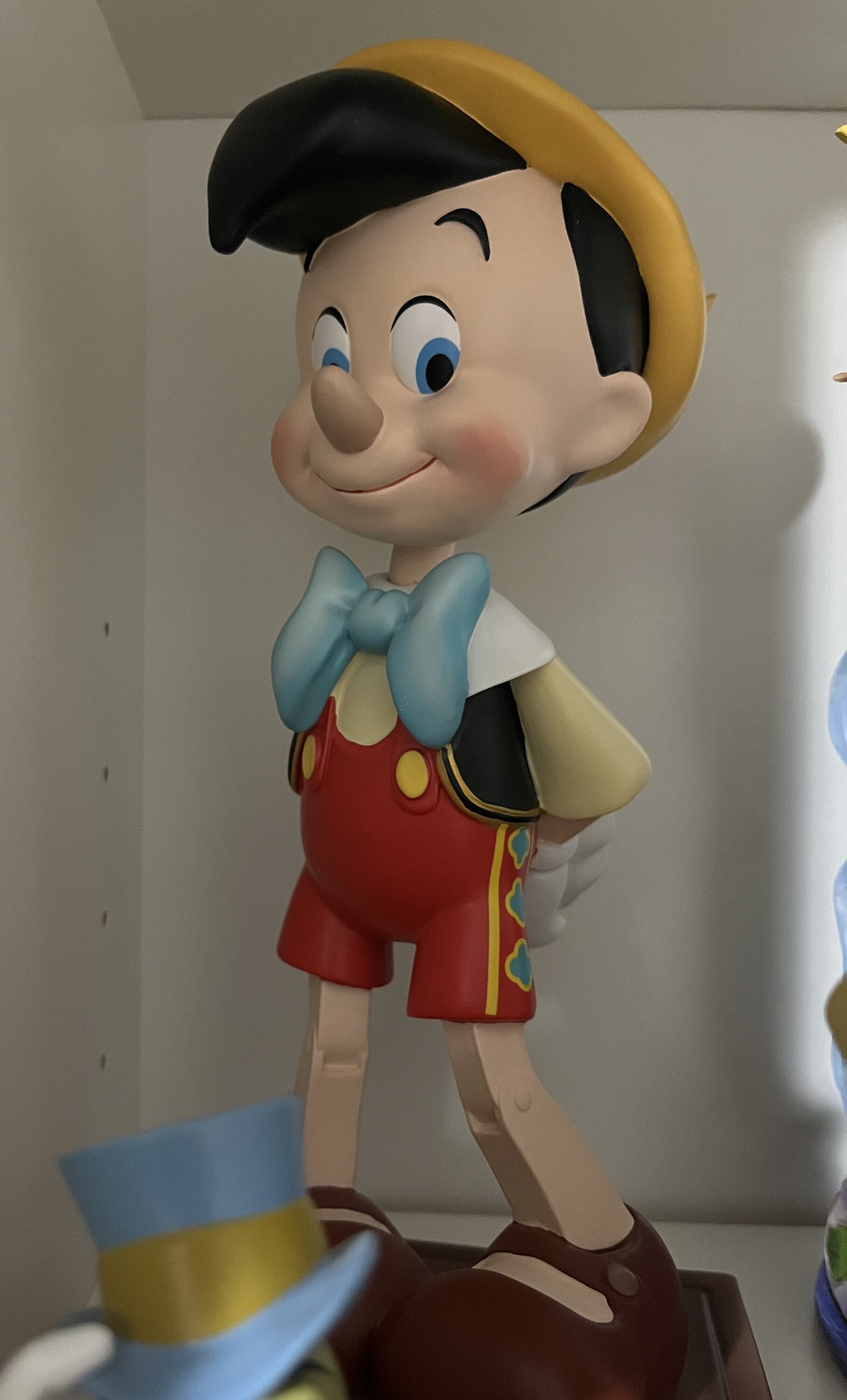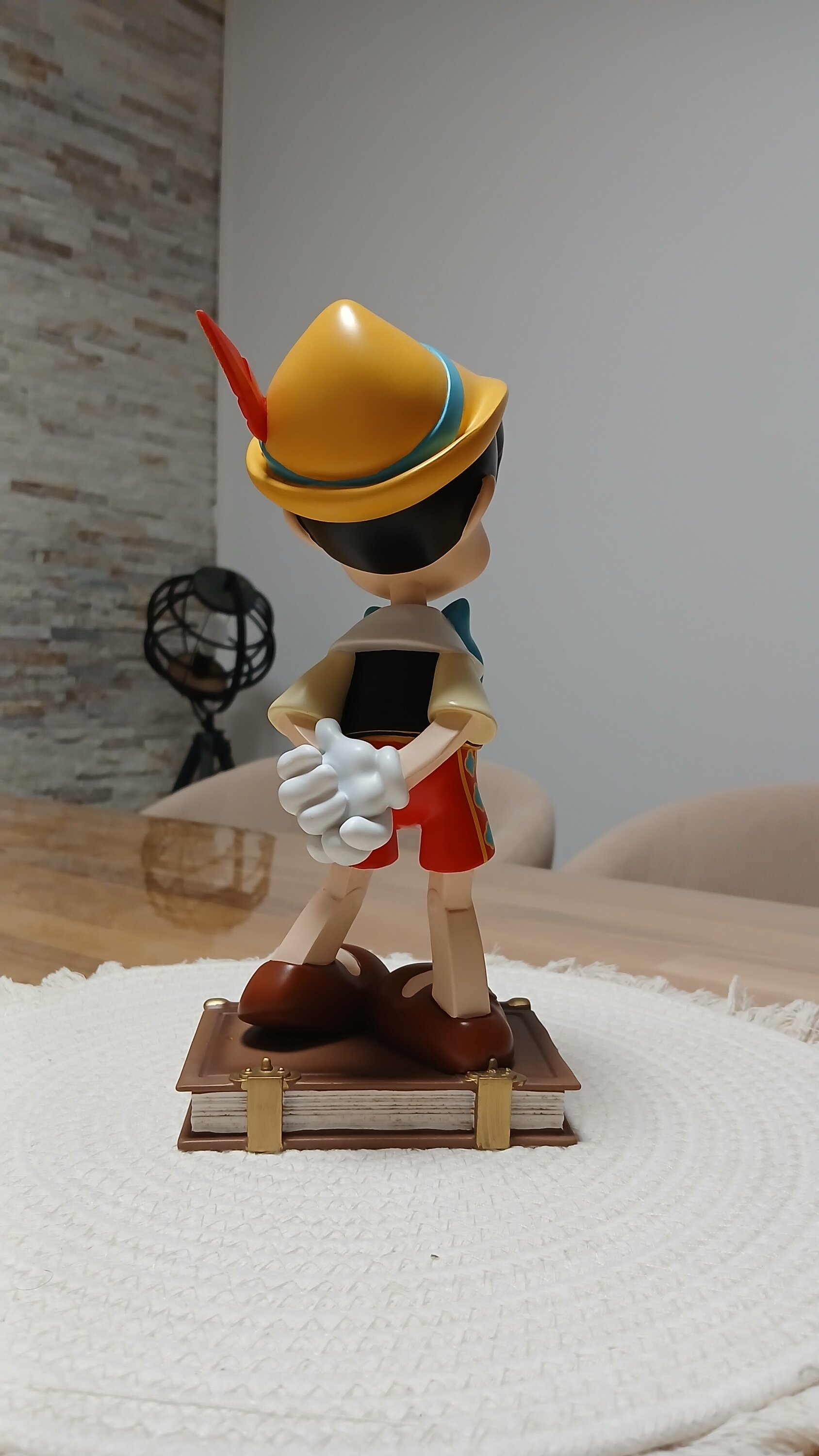 Quelle surprise lorsque je l'ai reçue! Elle est bien plus grande en réelle qu'en photo! Cette pièce est réellement parfaite,mise encore plus en valeur avec son livre sous le dessous. Une incontournable pour les fans de pinocchio. J'ai pris le Jiminy cricket de la même gamme et elles s'accordent parfaitement.