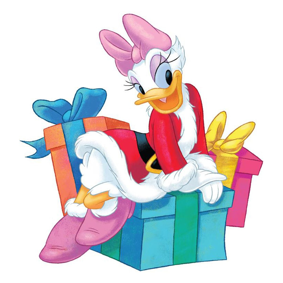 Daisy Duck s'habille pour la saison avec cette tenue de Père Noël rouge. Cette pièce hommage au 85e anniversaire marque la première fois que Daisy est présentée dans la collection Disney Showcase .