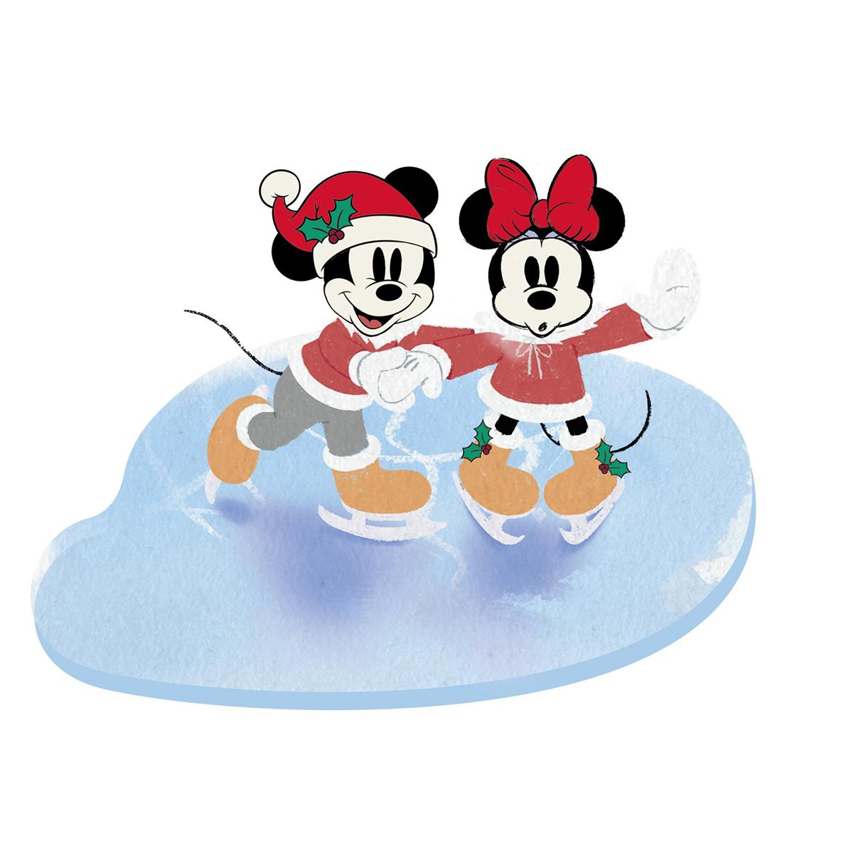 Mickey et Minnie Mouse célèbrent la saison dans cette scène de vacances festive. Mickey tient Minnie fermement pendant qu'elle glisse sur l'étang.