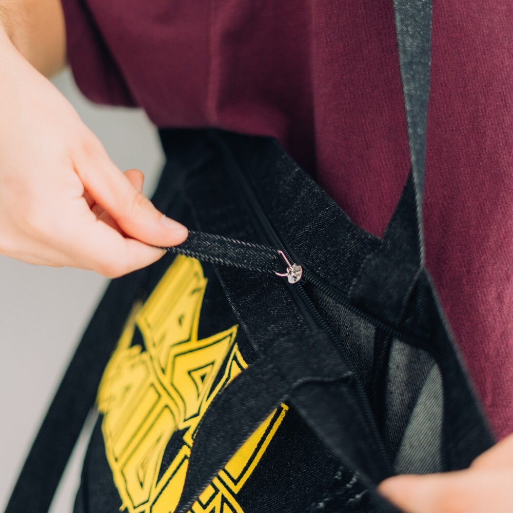 Affirmez votre style avec ce sac tote Iron Maiden Premium ! Fabriqué en 100 % coton, il est doté de deux anses, d’une fermeture éclair, d’une petite poche intérieure et de deux poches extérieures, dont une avec un fermoir métallique. Orné d’un écusson et de motifs sérigraphiés inspirés du groupe légendaire, il est parfait pour les fans qui recherchent à la fois style et praticité.