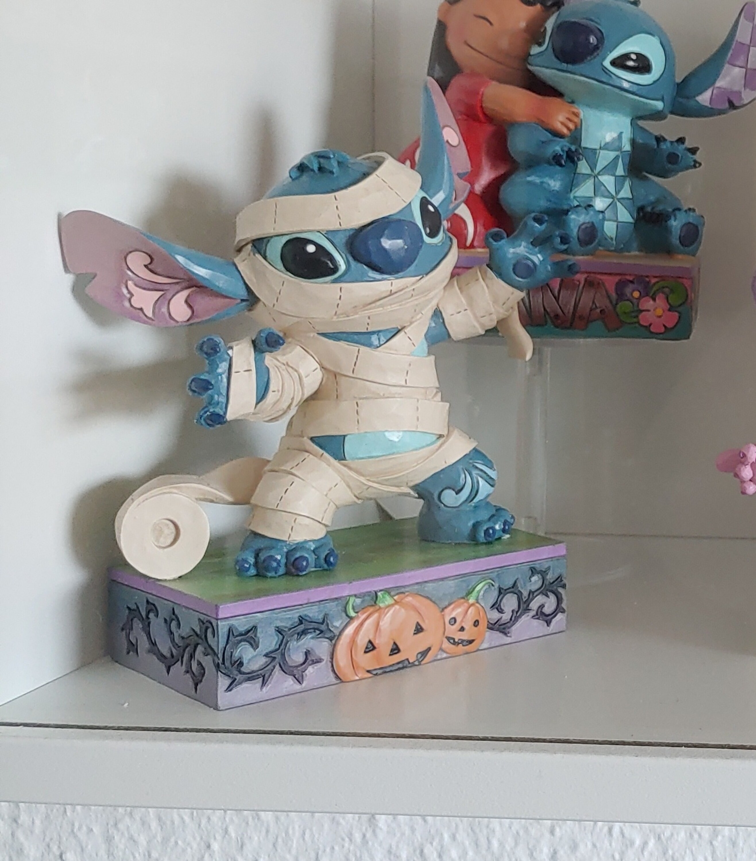Adorable figurine de Stich. Super bien détaillée. De belle taille. Idéale pour décorer la maison 🏠 au moment d’Halloween ou pas d’ailleurs 😉Trop belle ❤️
