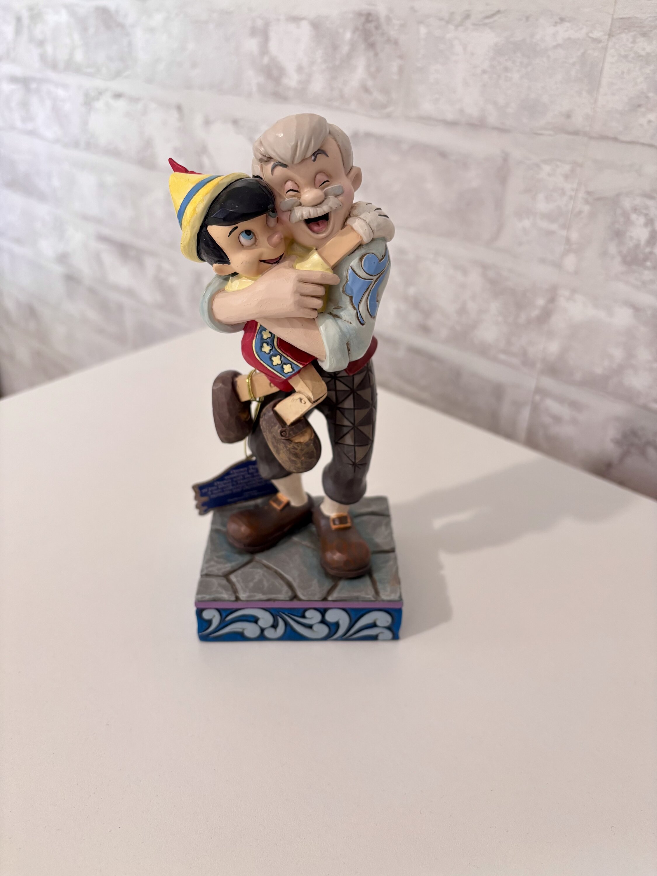dans cette figurine Jim Shore a réussi à capturer dans un câlin toute l'affection qu'un père peut ressentir pour son fils et Pinocchio lui rend la pareille, vraiment touchante et en même temps joyeuse grâce à Jim Shore