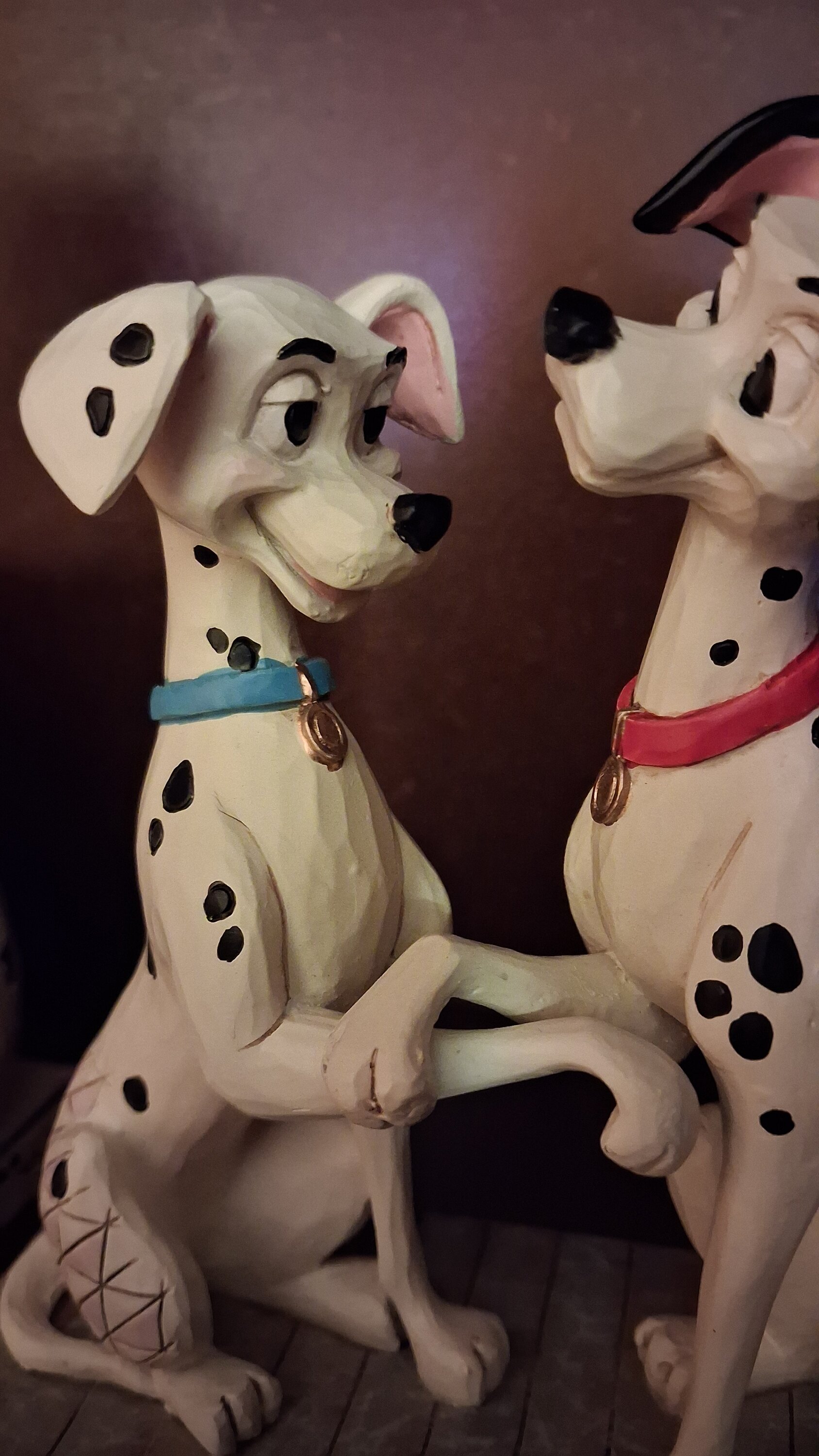 La statuina di Pongo e Perdita è bellissima, davvero. Dal vivo rende tantissimo e si vede che è fatta bene. È uno di quei pezzi che guardi volentieri ogni giorno e che ti fa sorridere.