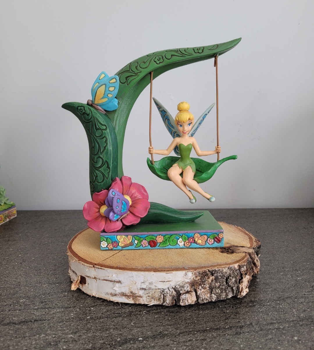 Cette pièce colorée de l'artiste bien-aimé Jim Shore capture la fantaisie de la fée bien-aimée de Disney, la Fée Clochette, lors d'une journée de printemps insouciante. Perchée sur une balançoire au milieu de fleurs colorées, la Fée Clochette sourit brillamment dans la beauté de la nature.