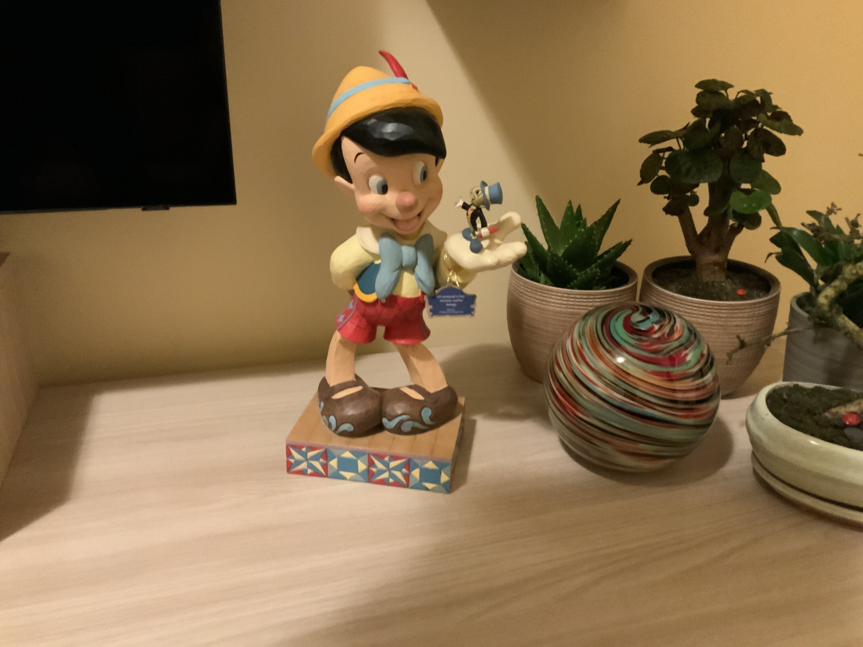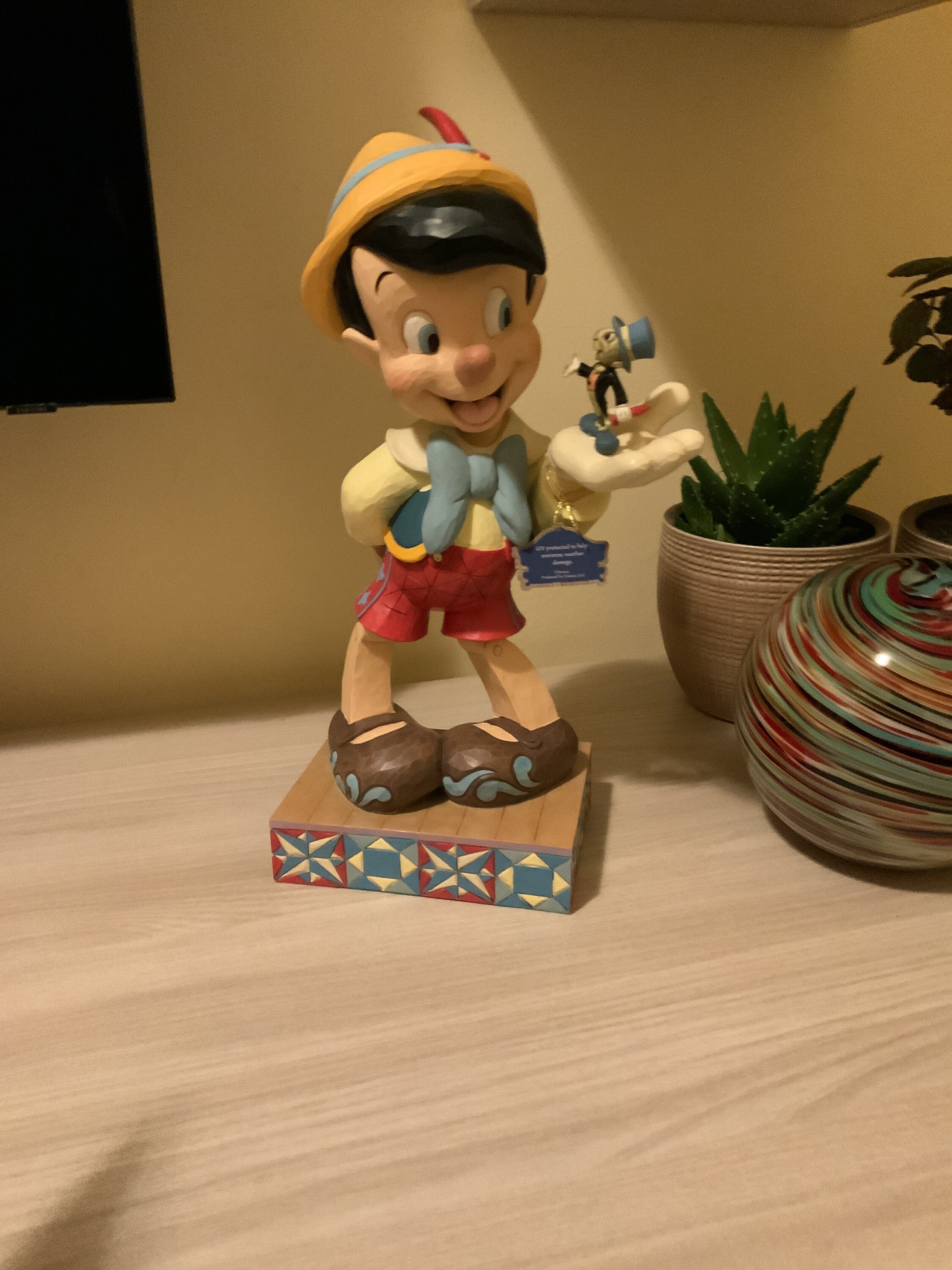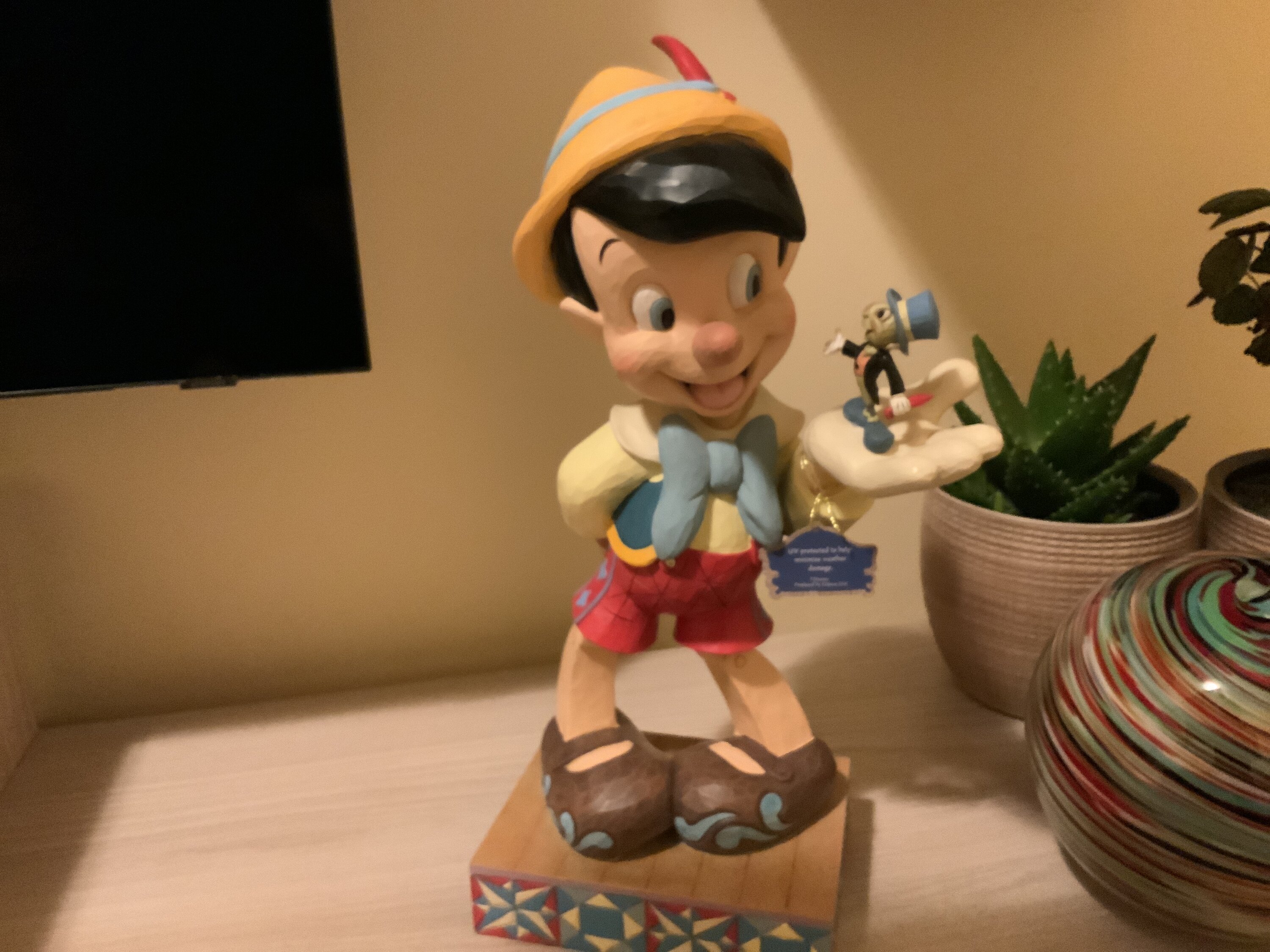 Adorable pinochio de taille assez grande tout dans le détail avec jiminy sur sa main je le recommande pièce magnifique