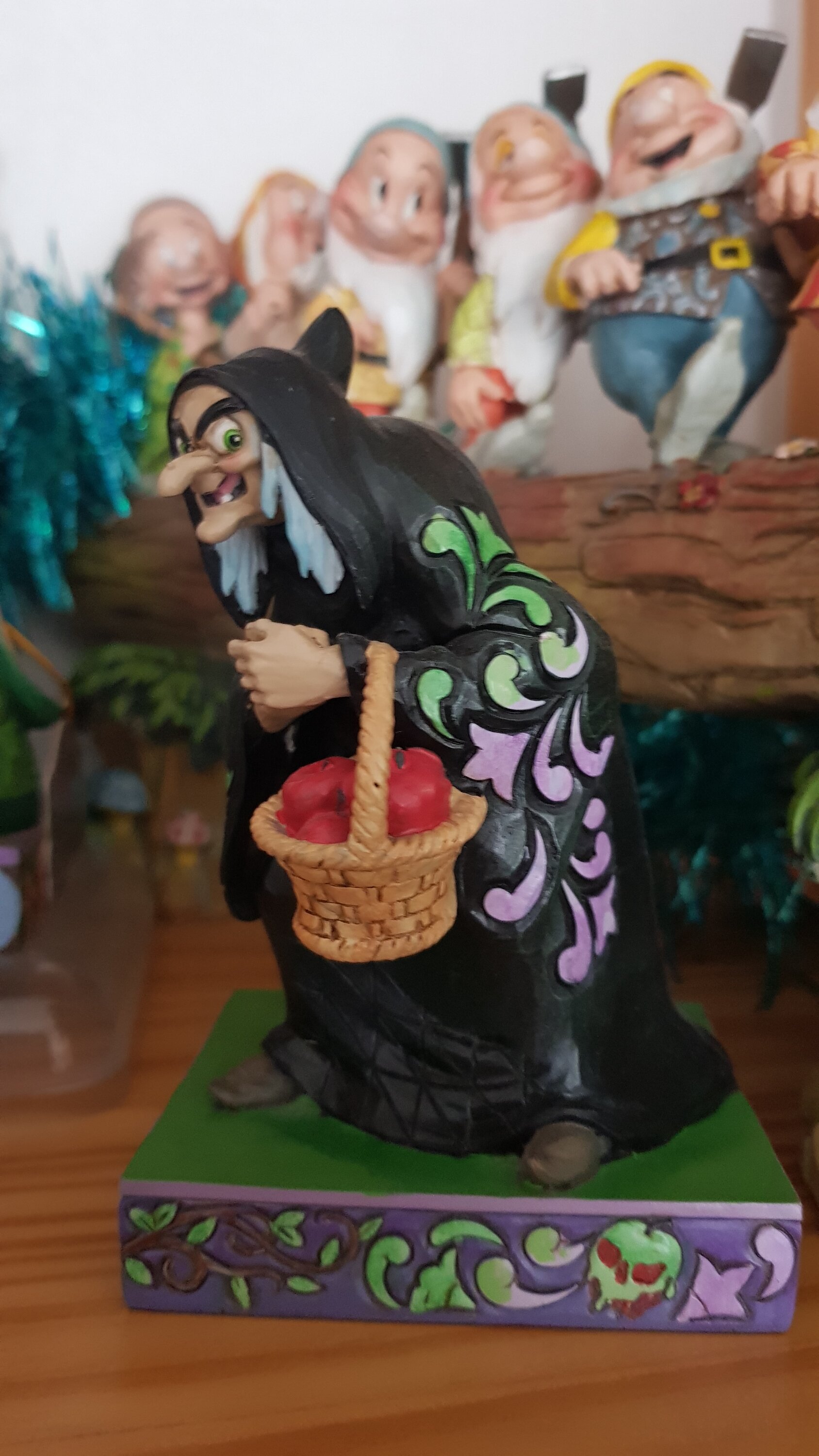 Une des rares représentations de la mechante reine de blanche neige en sorcière.. Avec son panier de pommes, elle est très bien réalisée et son visage est bien détaillé