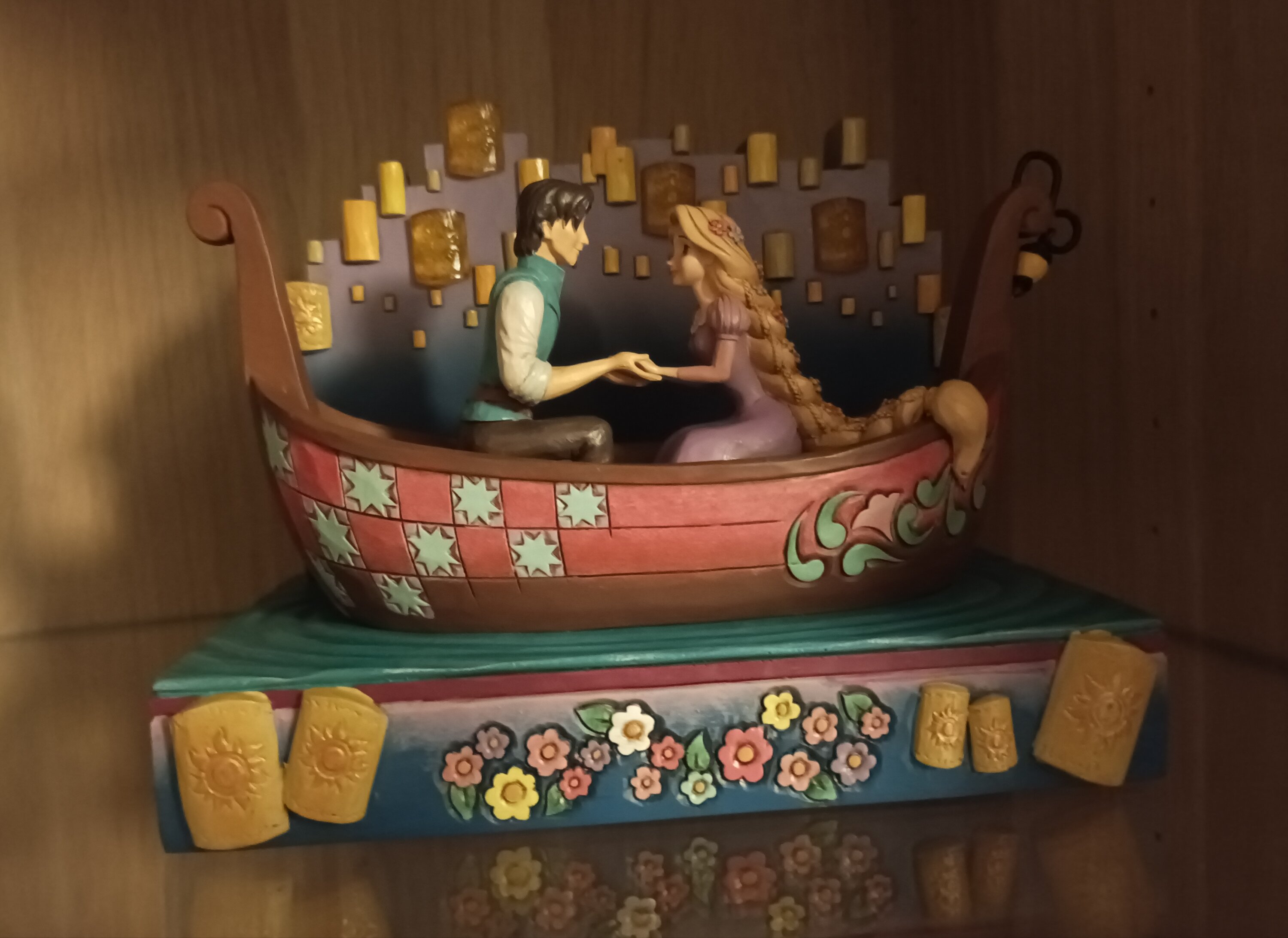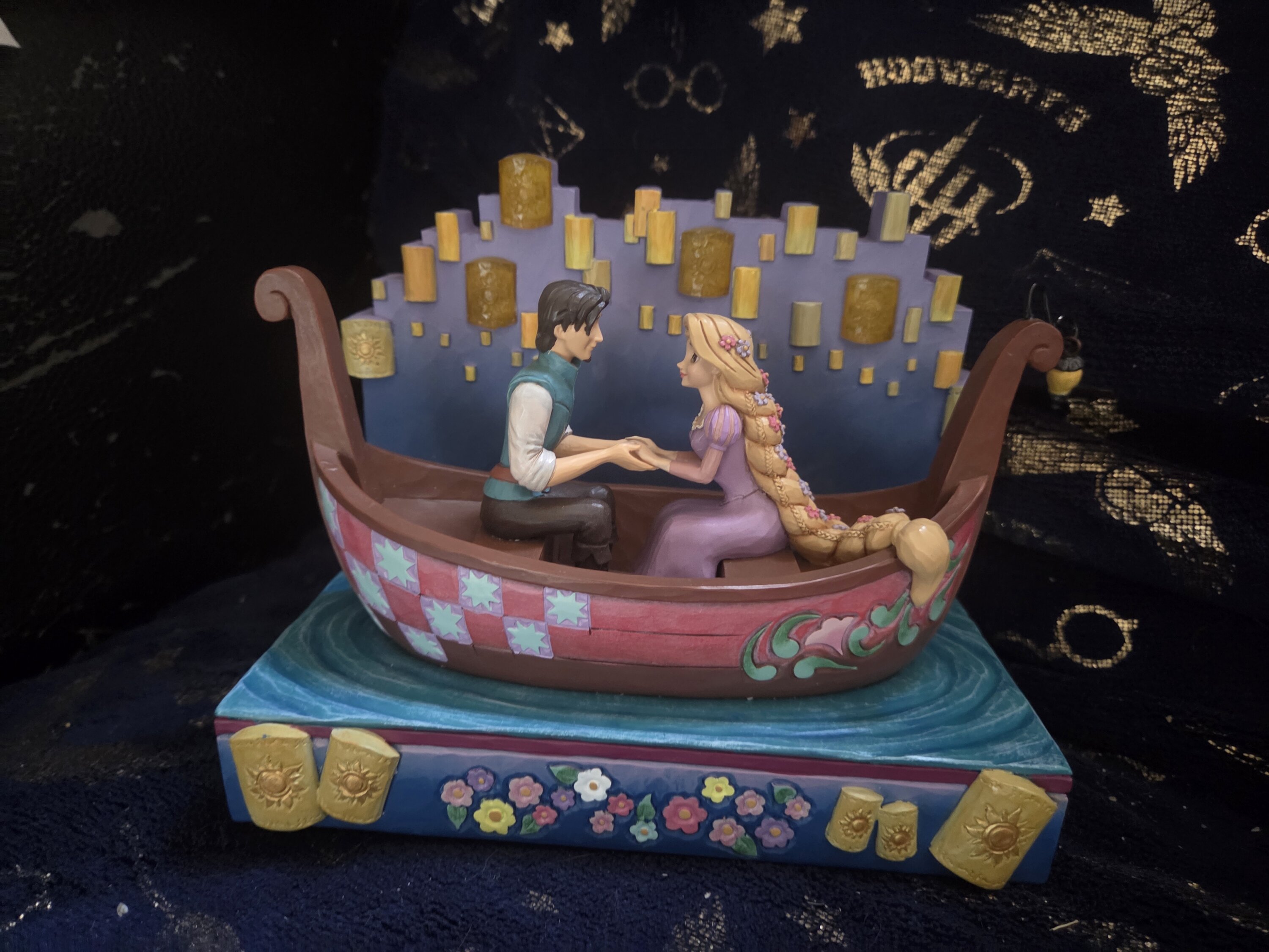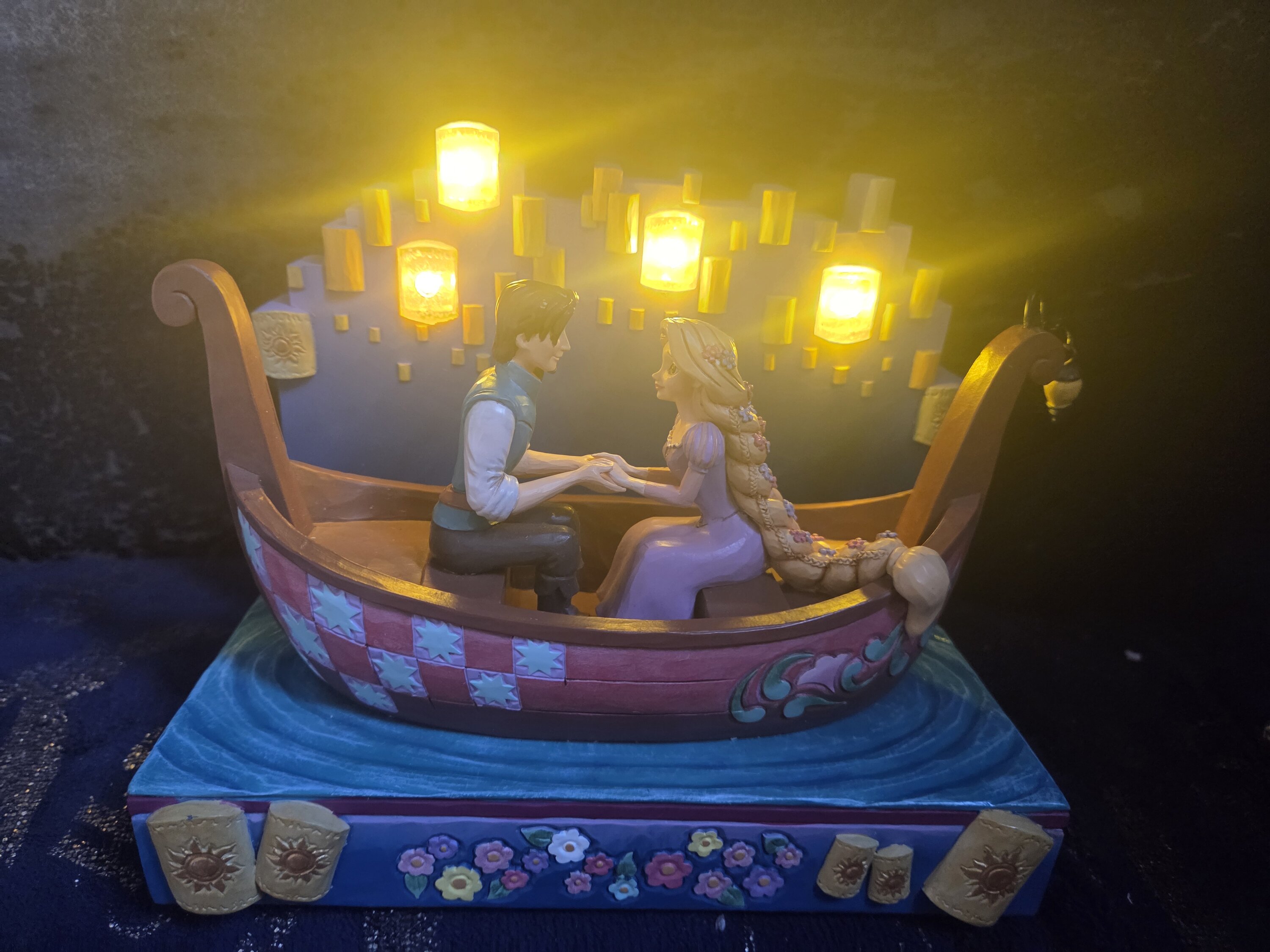 Dans ce magnifique design Jim Shore, Raiponce et Flynn Rider partagent une promenade romantique en bateau à travers des lanternes flottantes en LED lumineuses. Capturant l'enchantement, le charme de Raiponce brille avec des fleurs dans ses cheveux. Le bateau présente les détails emblématiques de Jim Shore.