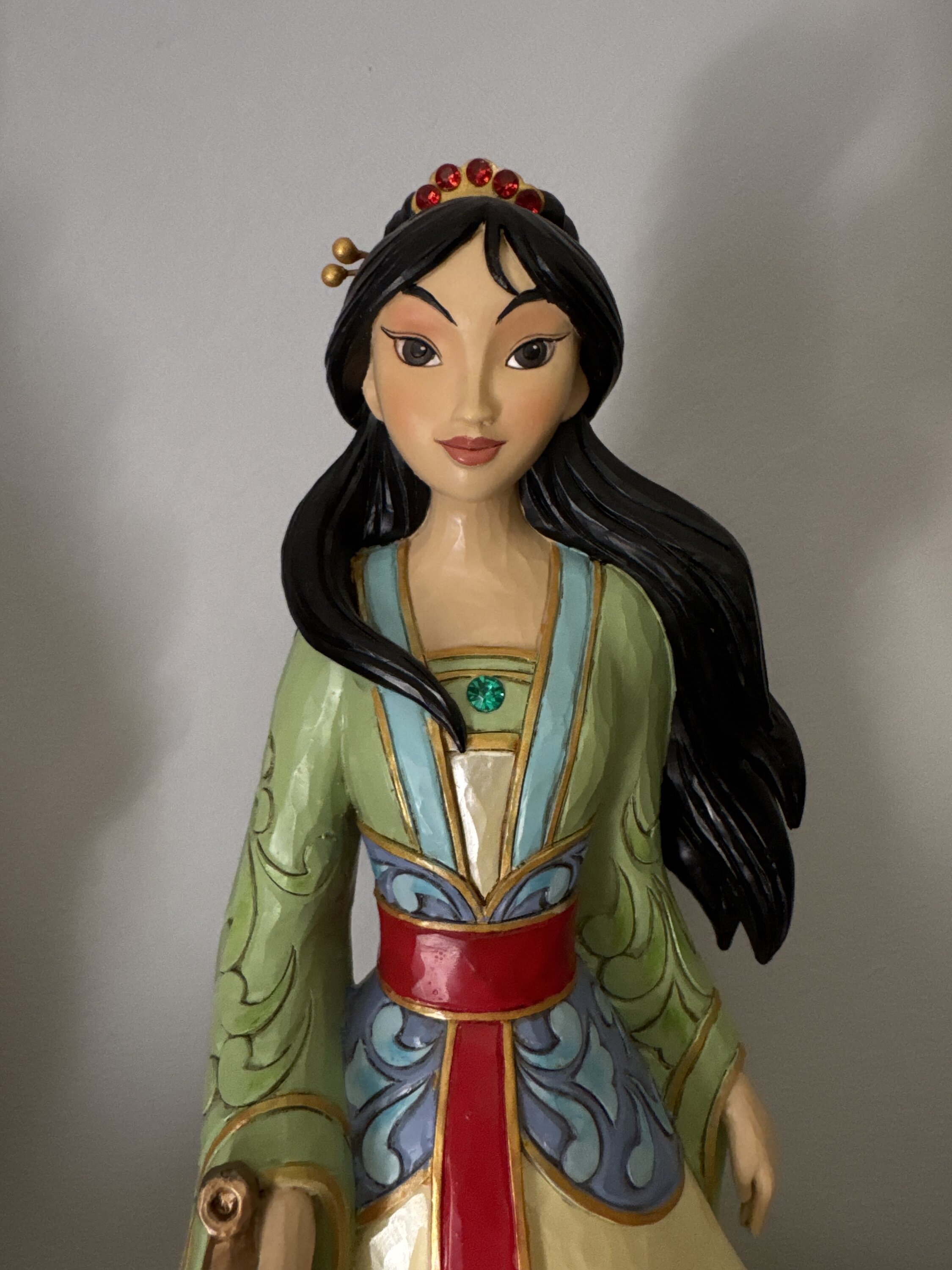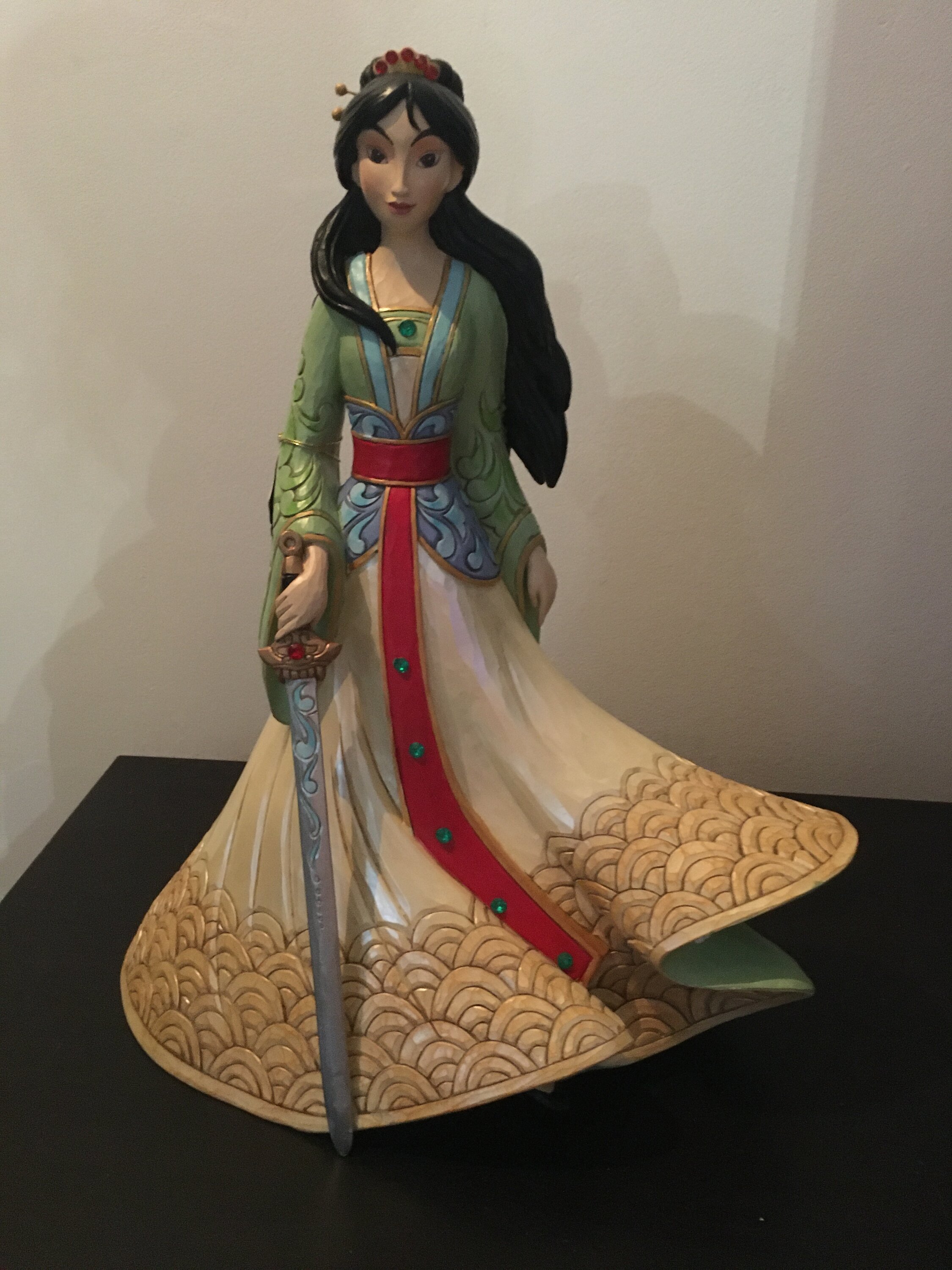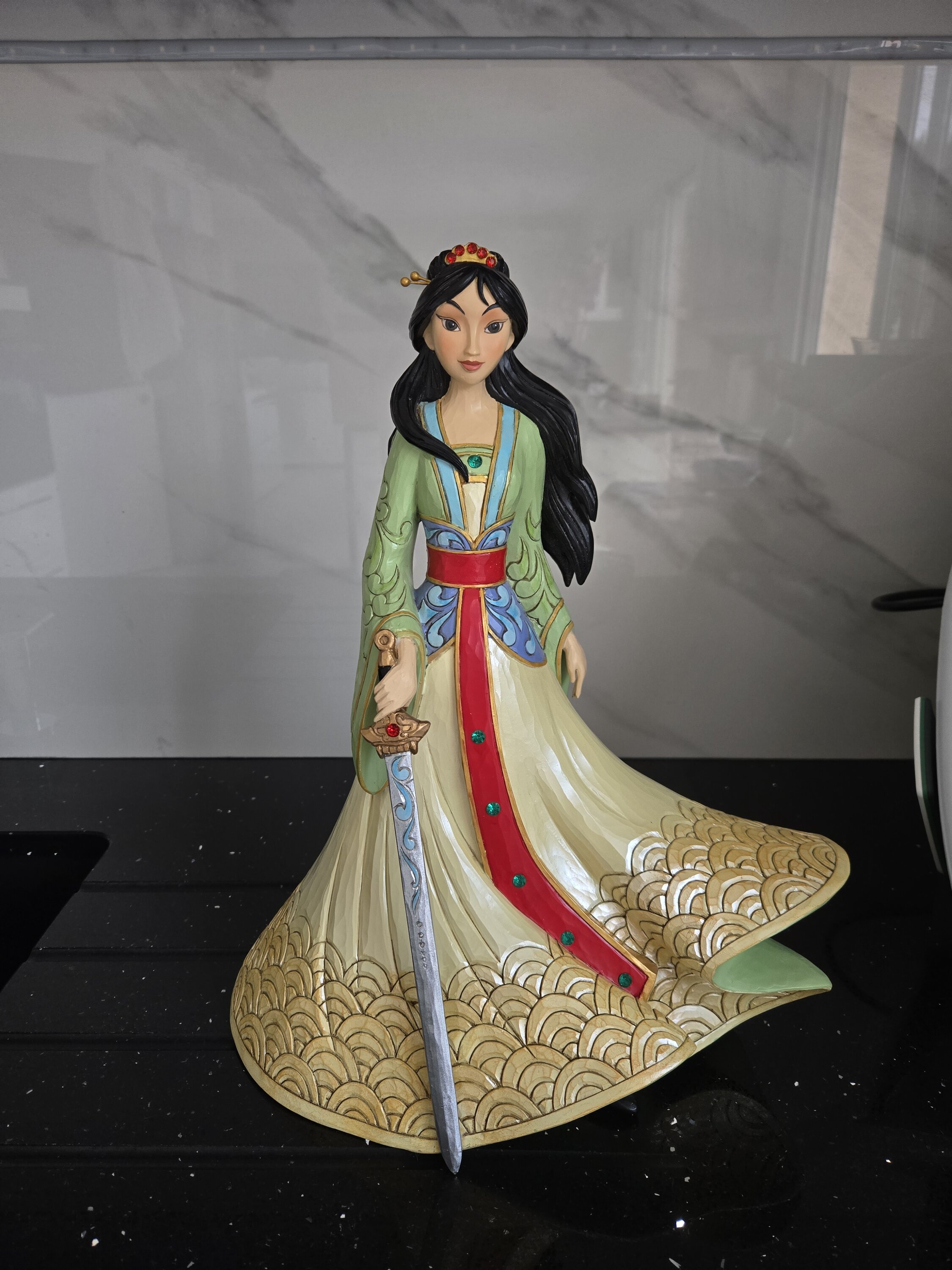 Cette figurine est grande est belle. Avec sa robe, ses cheveux aux vents et son épée, Mulan est magnifique.