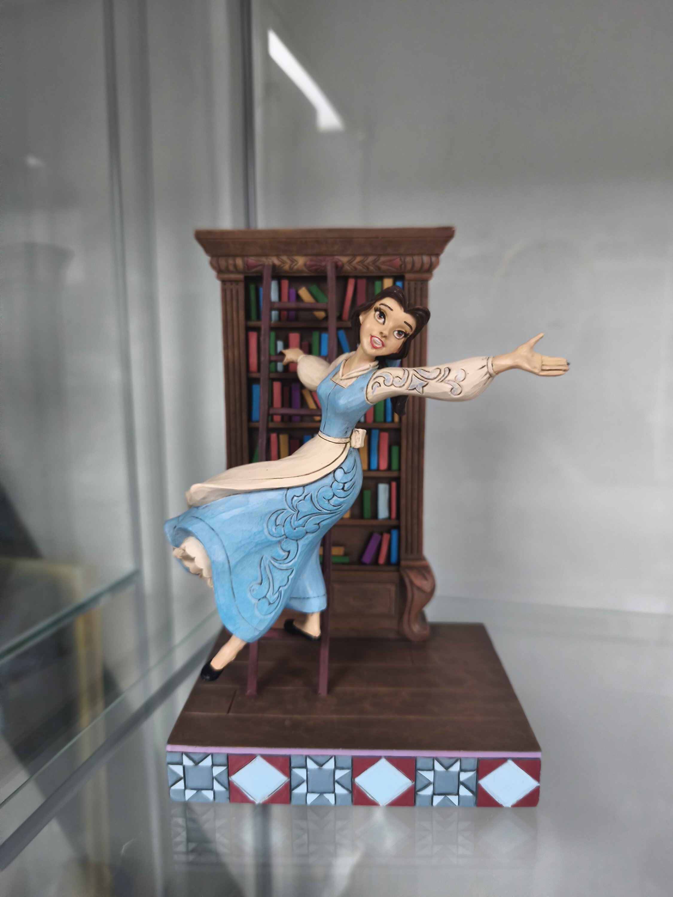 Superbe figurine très bien faite avec une taille généreuse,cerise sur le gâteau:sa robe est bleue (très rare dans cette tenue). La scène est réaliste et retrace celle du dessin animé dans laquelle Belle se penche sur la bibliothèque pour y choisir des livres;son bras penché lui donne vraiment le côté réaliste. Je la recommande vivement pour les fans.