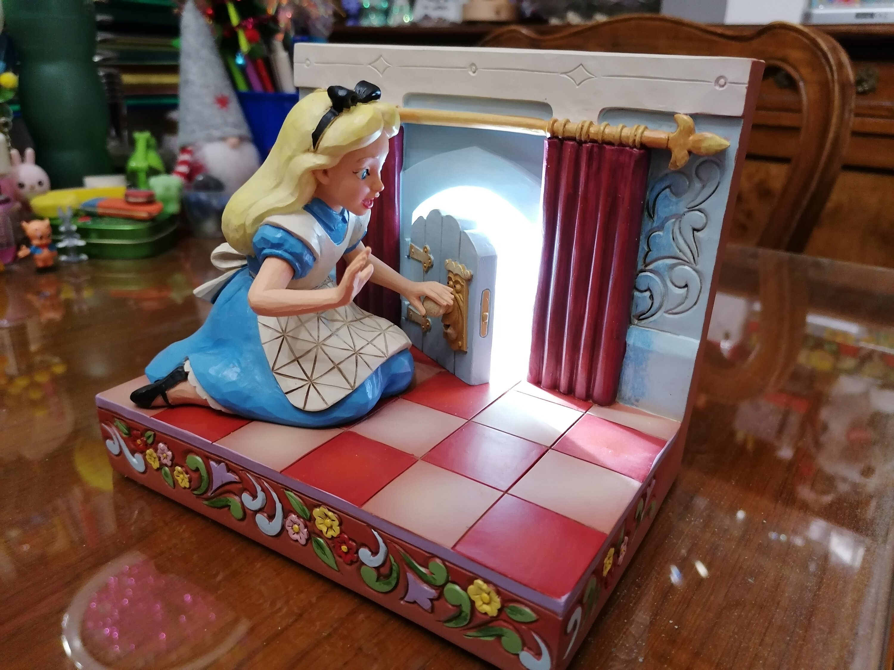 Belle statuette d une scène mythique du dessin animé d Alice avec lumière