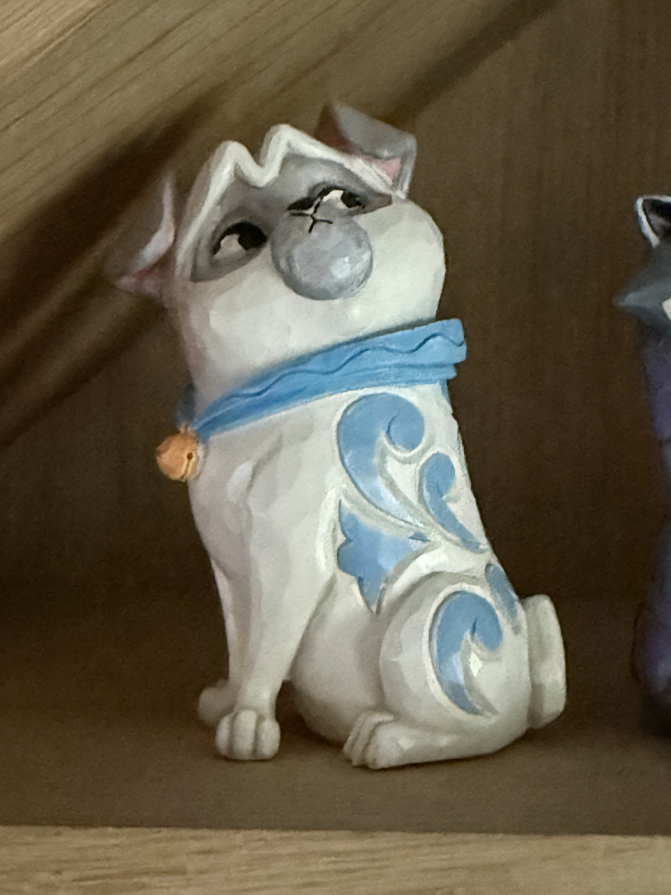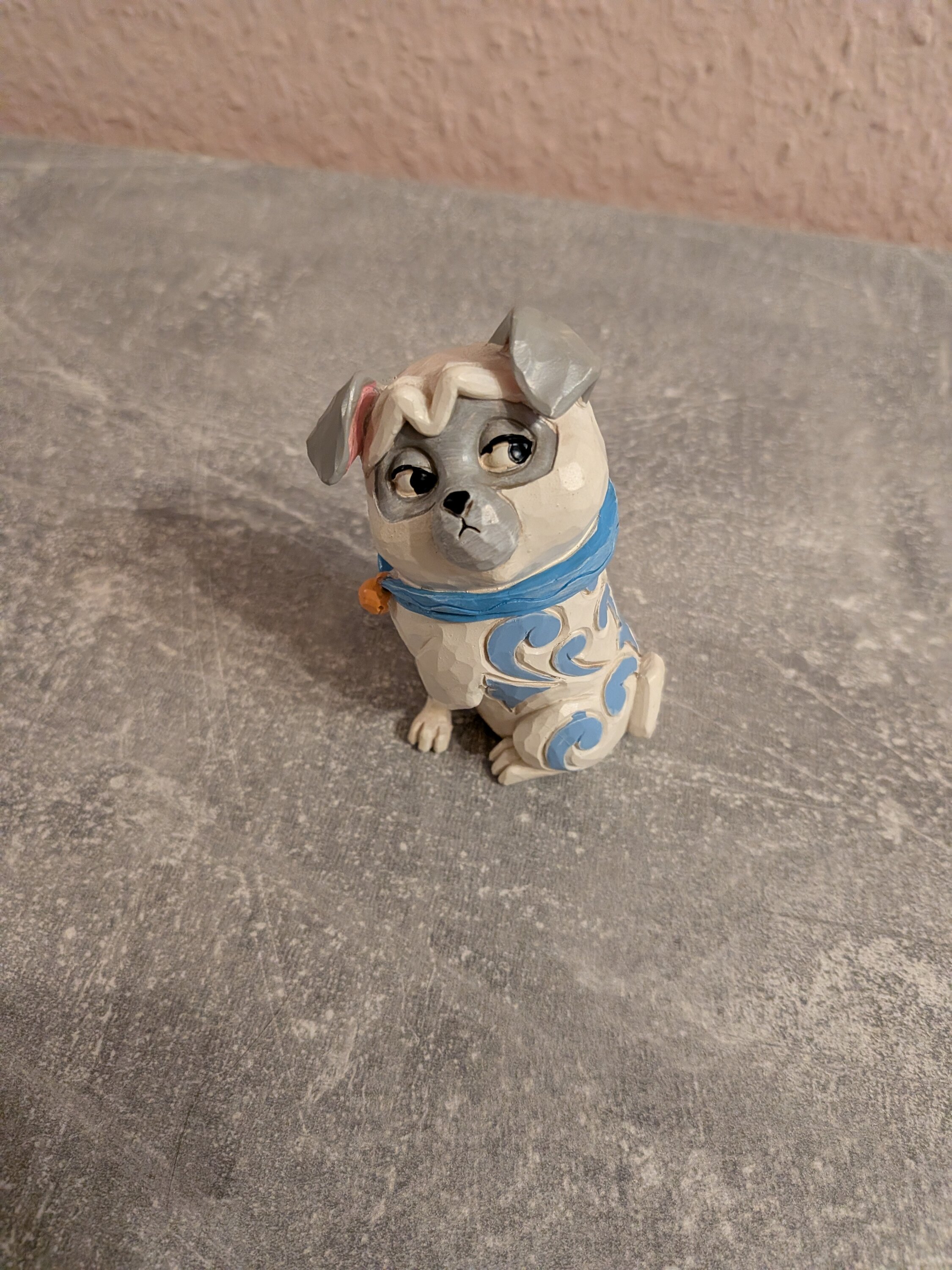Célébrez le 30e anniversaire de Pocahontas avec ce charmant buste de Jim Shore représentant Percy, le carlin choyé de Ratcliffe. Avec son expression impertinente, il arbore un collier bleu avec une cloche et présente le rosace complexe de l'artiste.