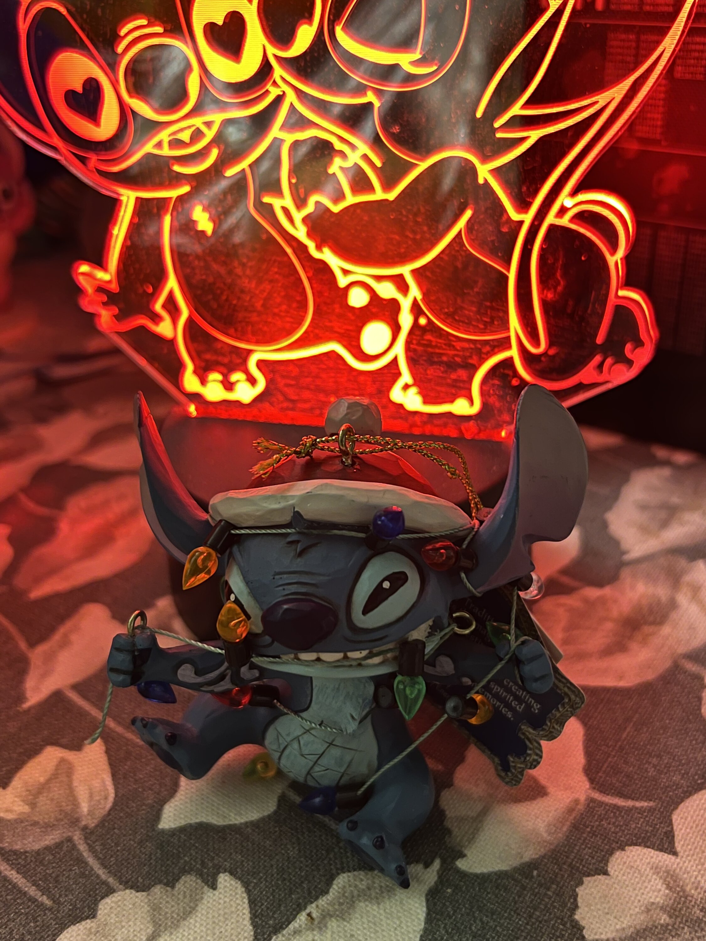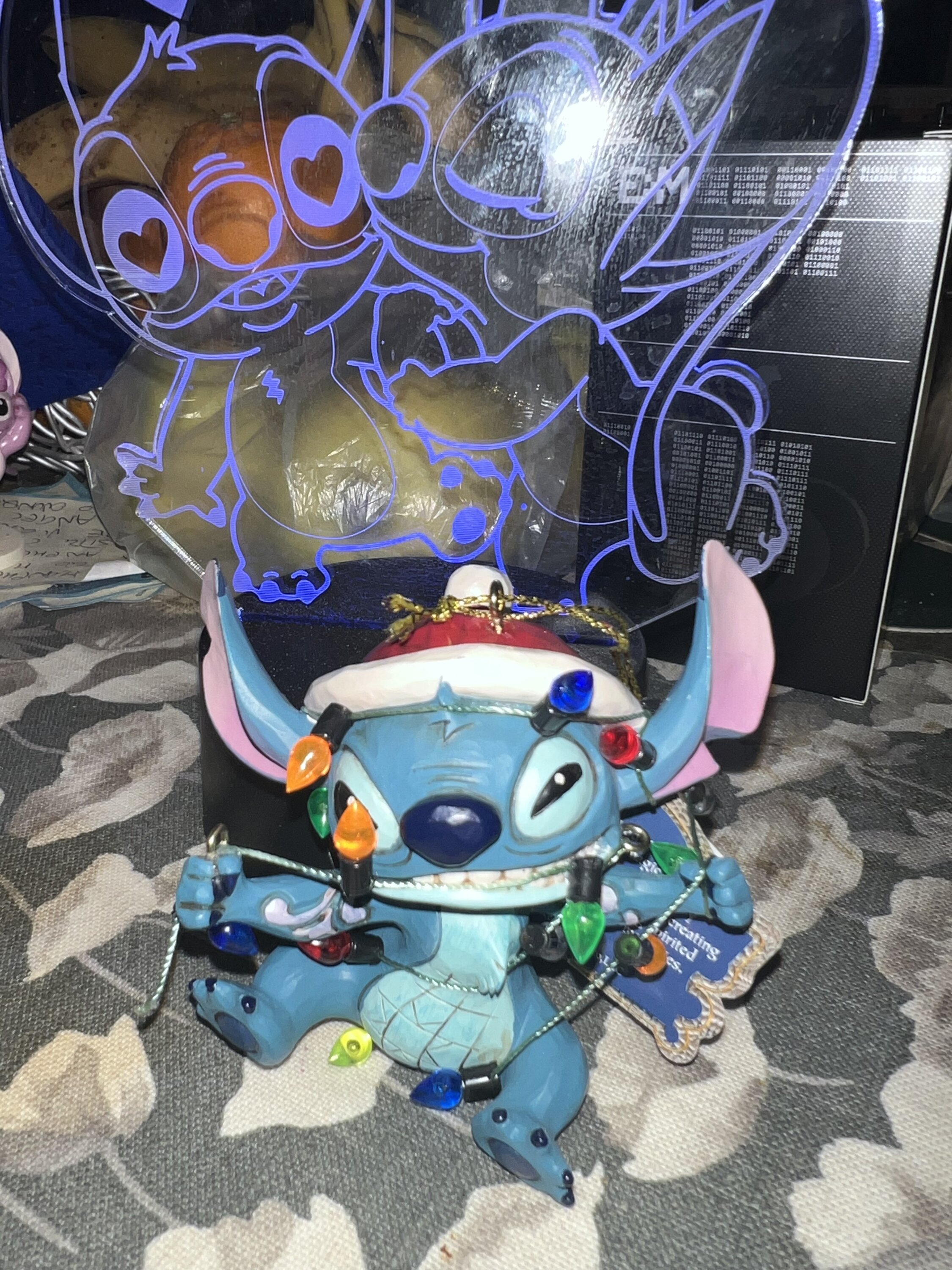 Stitch se met dans l'ambiance de Noël , même s'il est un peu dans le pétrin. Entouré de guirlandes lumineuses, il apportera une touche amusante à votre Noël . Ces figurines ne sont pas des jouets pour enfants. Réservé aux adultes. Hauteur: 8 cm