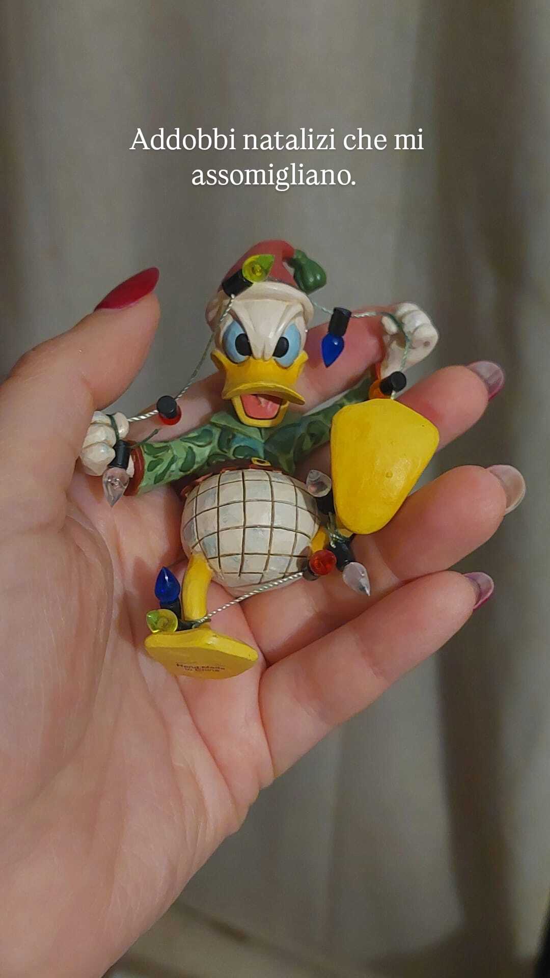 Addobbo carinissimo, con Paperino che cerca di liberarsi dalle luci natalizie. Molto bella la fattura, come sempre. Sarà la mia new entry nell'albero di Natale.