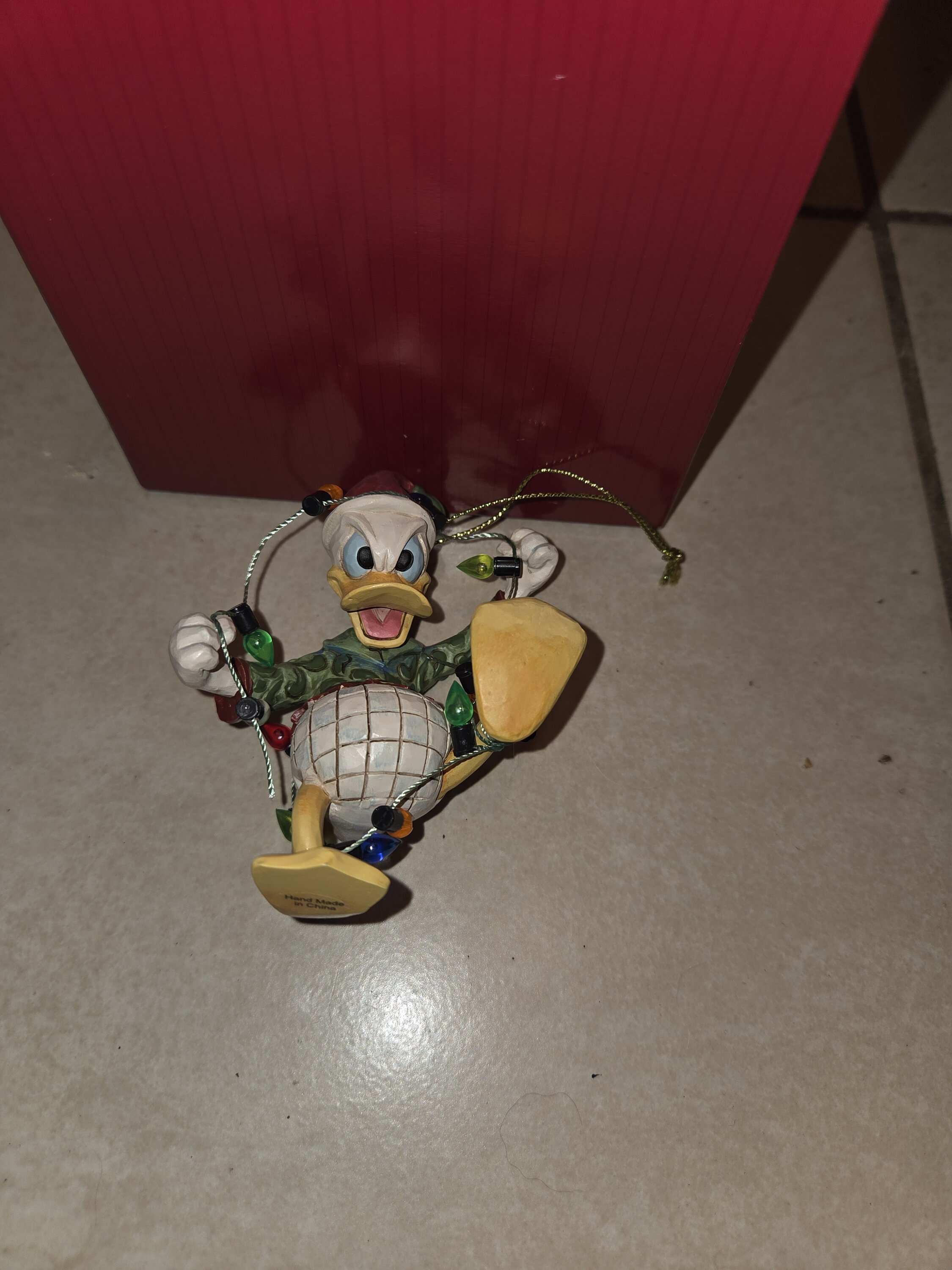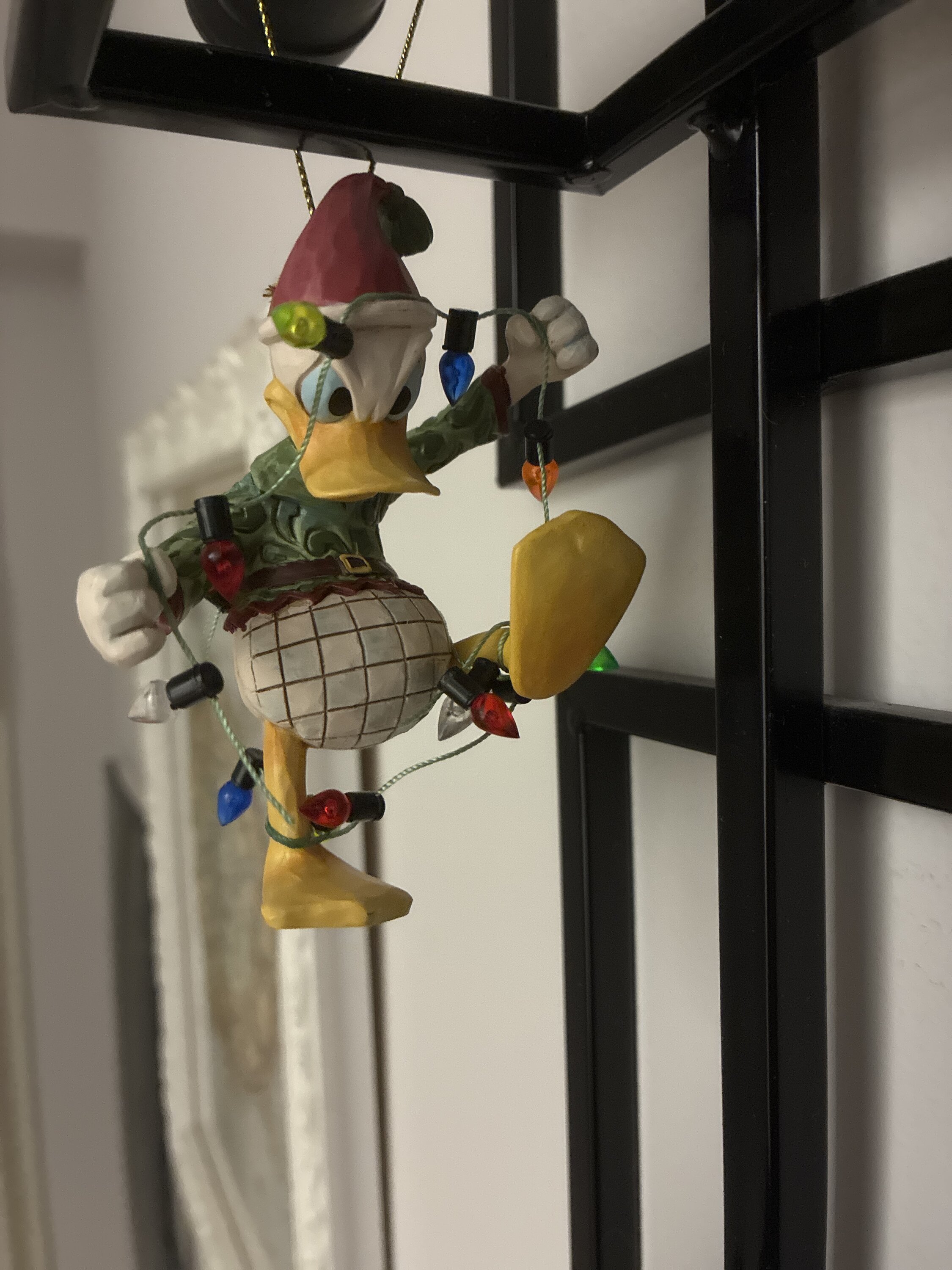Une adorable décoration représentant Donald Duck tentant de se libérer des guirlandes lumineuses de Noël. Magnifiquement réalisée, comme toujours. Elle trouvera sa place sur mon sapin.