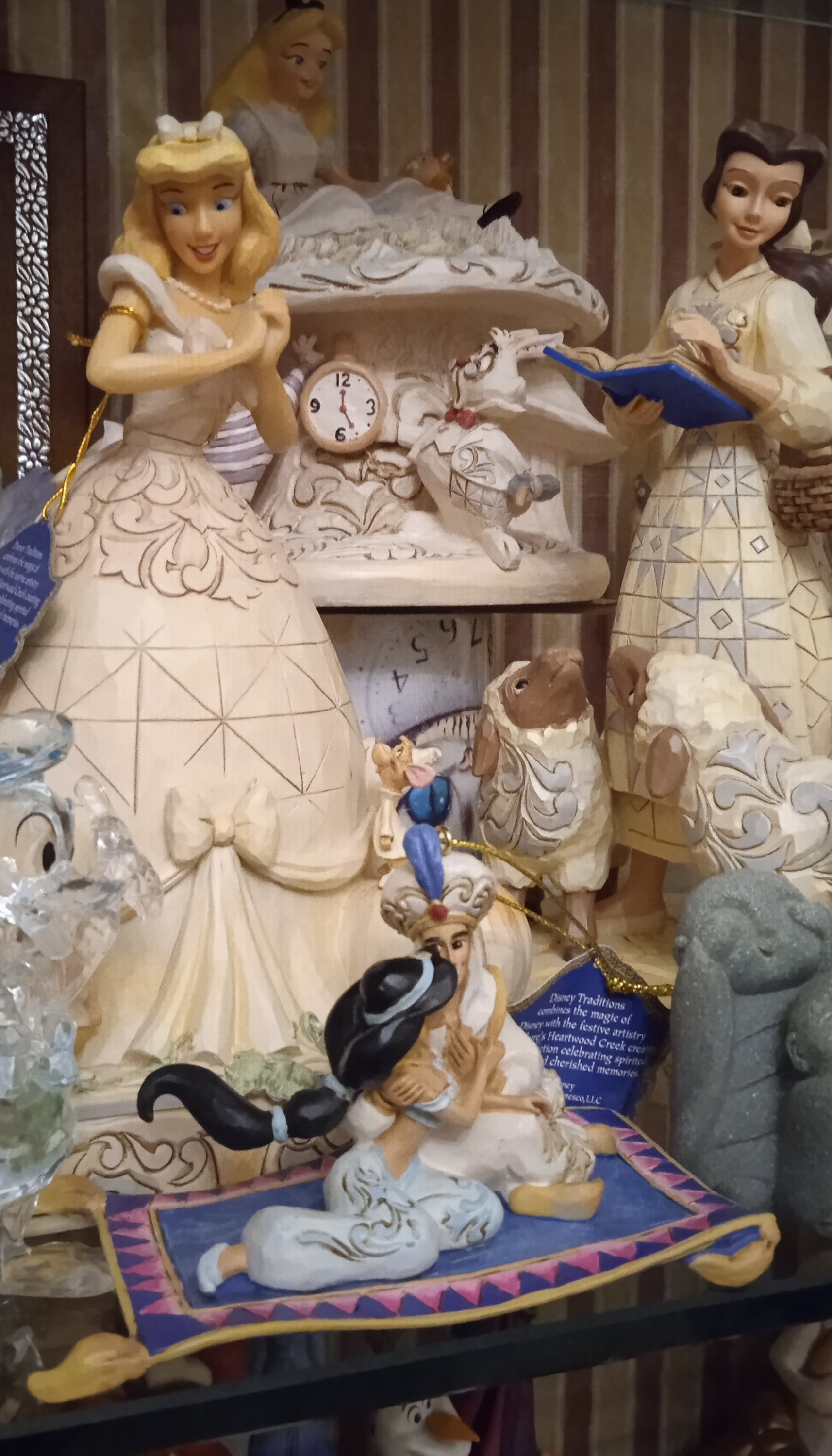 Pendentif Aladdin et Jasmine de la collection Disney Traditions de Jim Shore. Ces figurines ne sont pas des jouets. Réservé aux adultes.