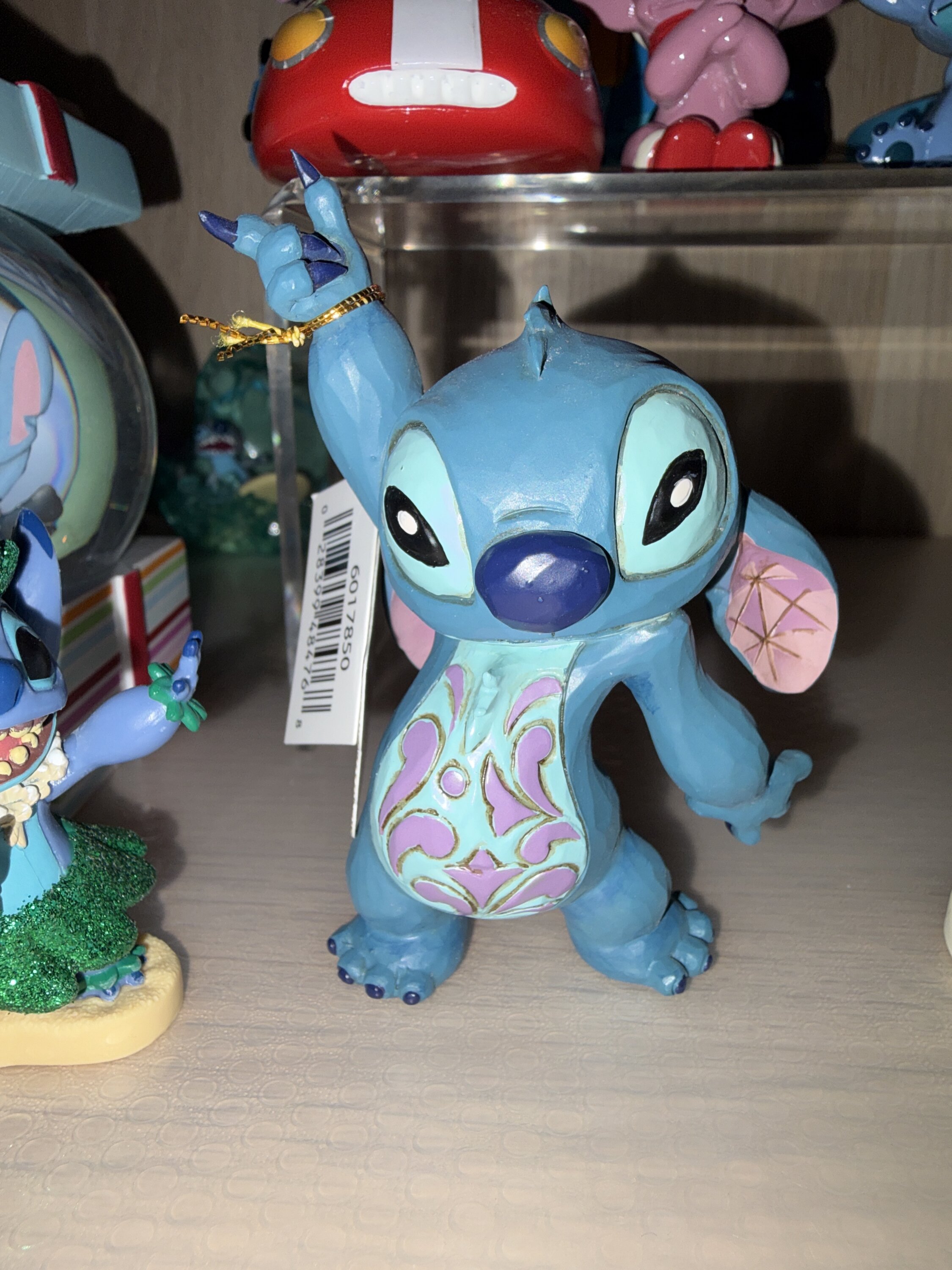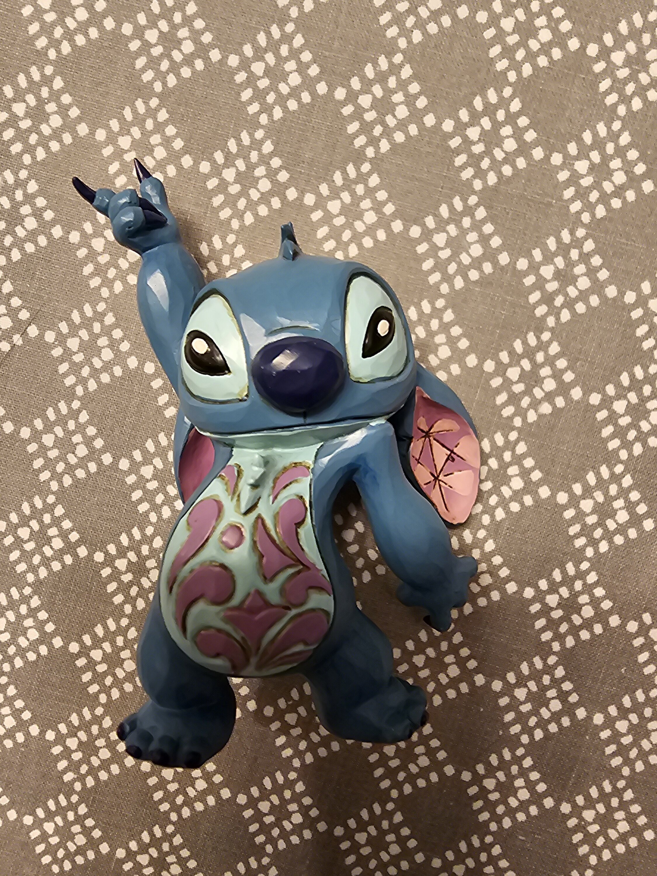 Ce design animé de Jim Shore capture l'esprit joueur de Stitch, qui danse avec des roses sur le ventre et des oreilles à motifs. Qu'il s'agisse de hula ou d'Elvis, ses mouvements insouciants sont pleins de charme et de malice.