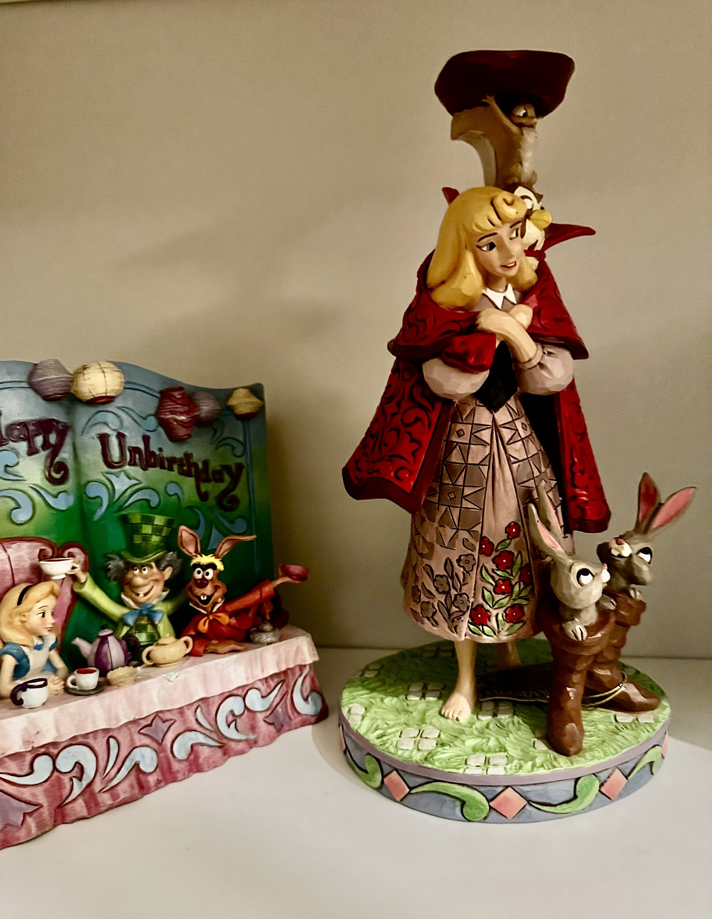 Les amis de la forêt d'Aurore se transforment en un homme au manteau rouge alors qu'elle part à la recherche de son prince. Un hibou, un écureuil et des lapins dans des bottes ajoutent du charme à cette captivante création Jim Shore , donnant vie à la scène mémorable du film avec enchantement.