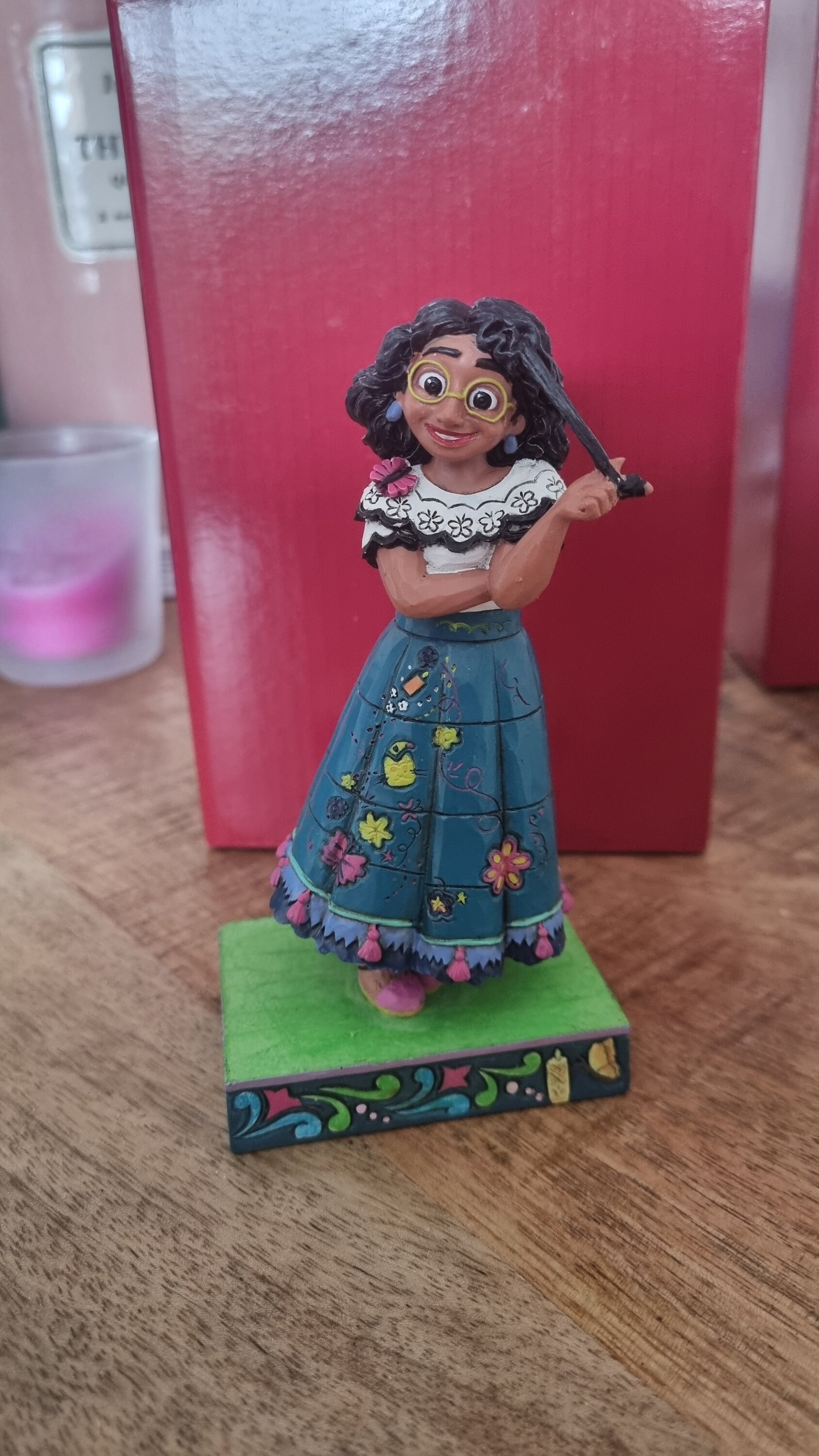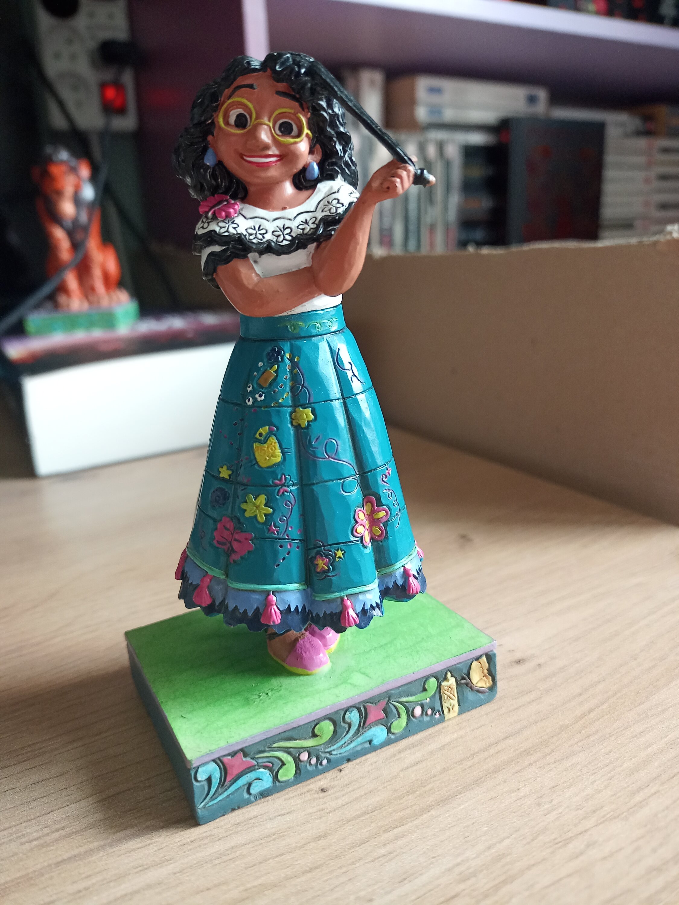 Detailreich gearbeitete, wertige Figur von Mirabel aus Encanto. Jim Shore weiß einfach was er tut. Der Versand über Wondercity lief reibungslos und schnell und die Figuren sind sicher im Originalkarton verpackt. Passt perfekt zu Bruno.