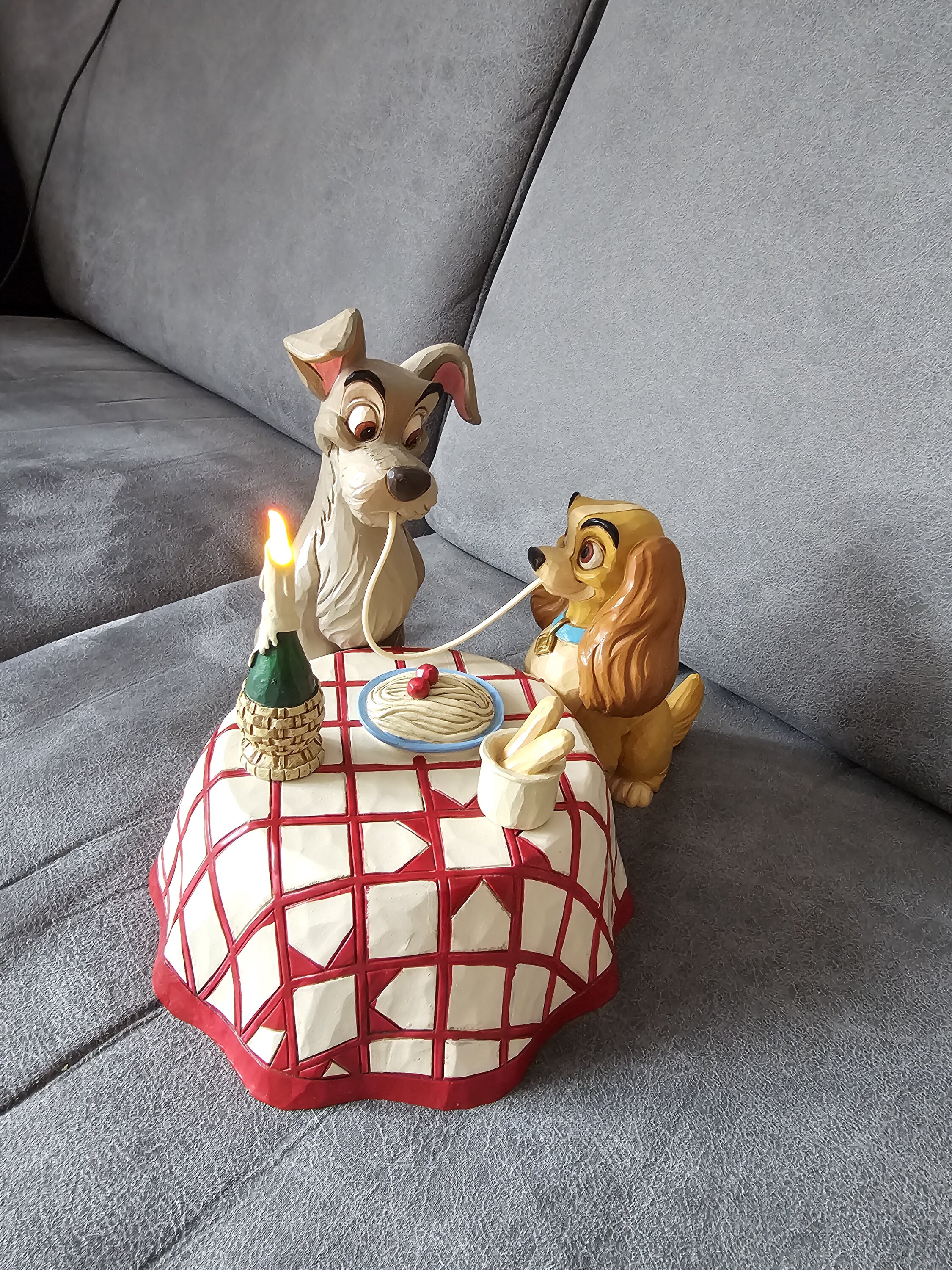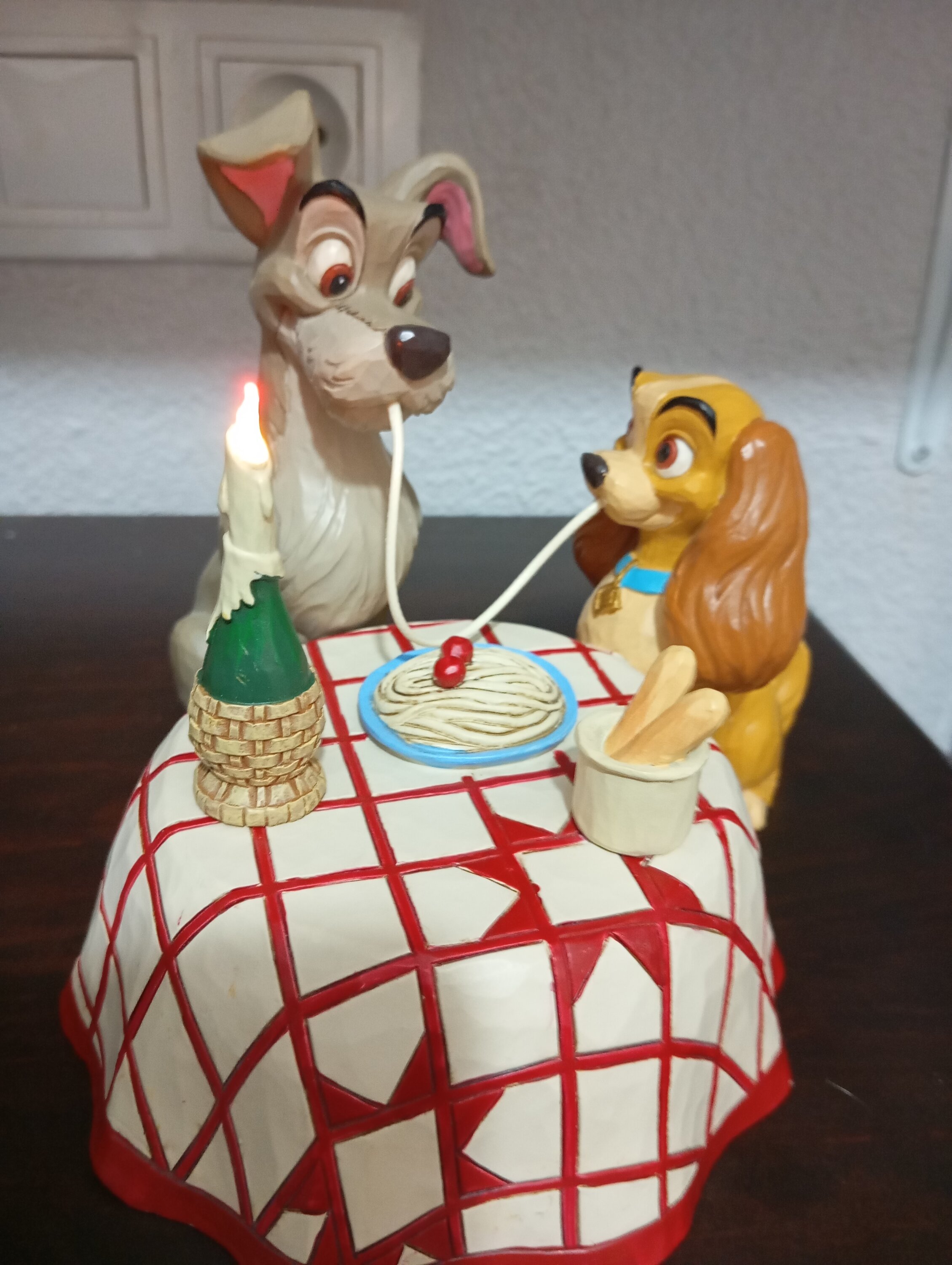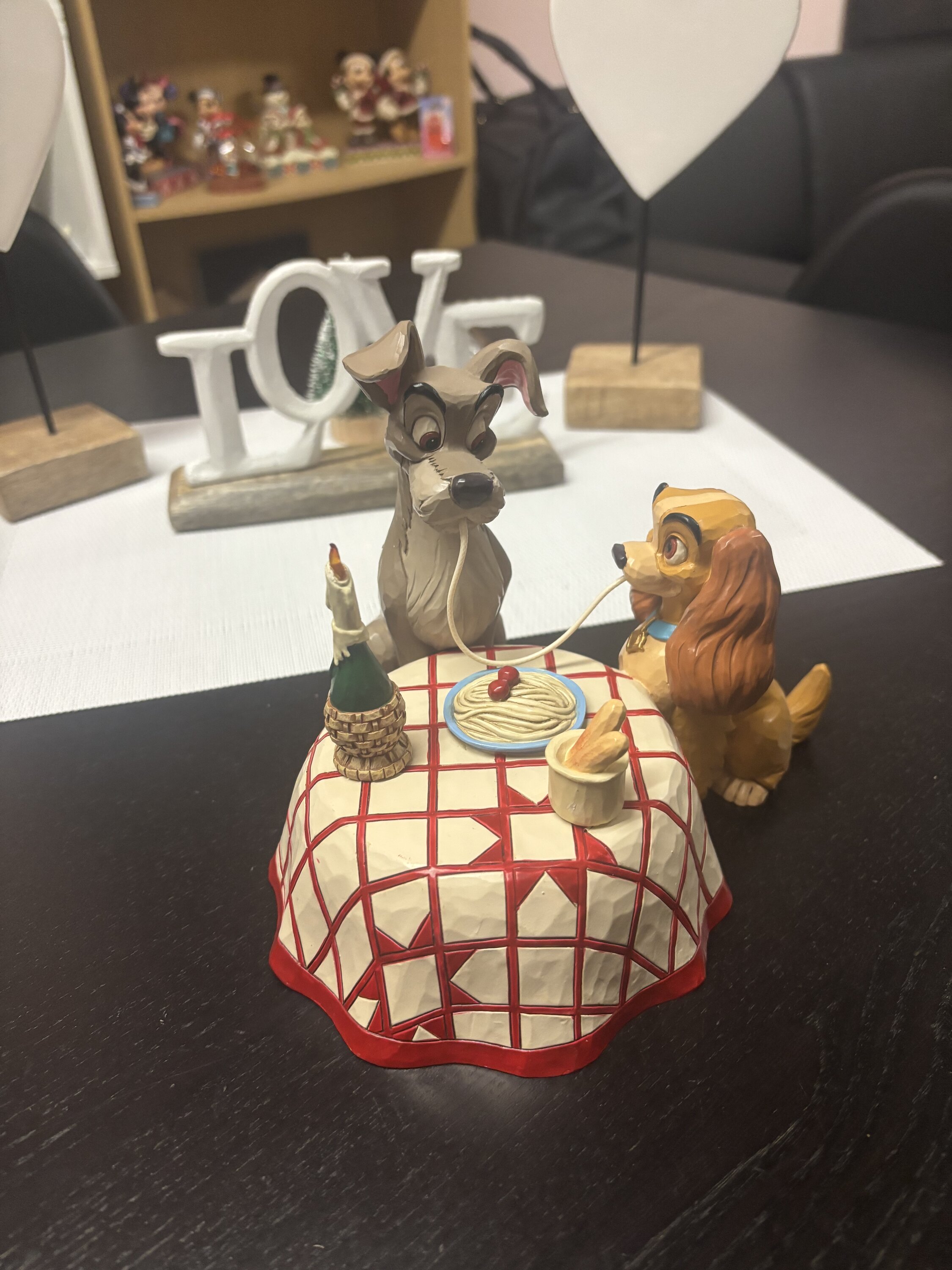 Très belle figurine représentant la scène mythique du film La Belle et Clochard au restaurant italien ♥️. On adore.🥰