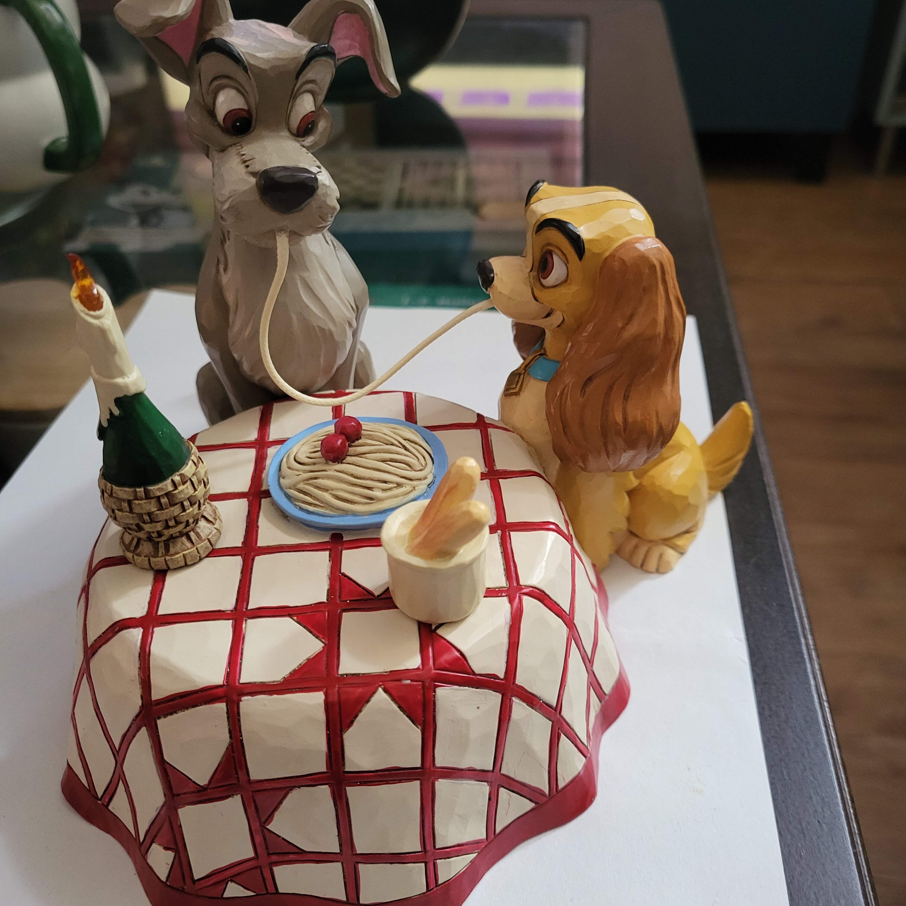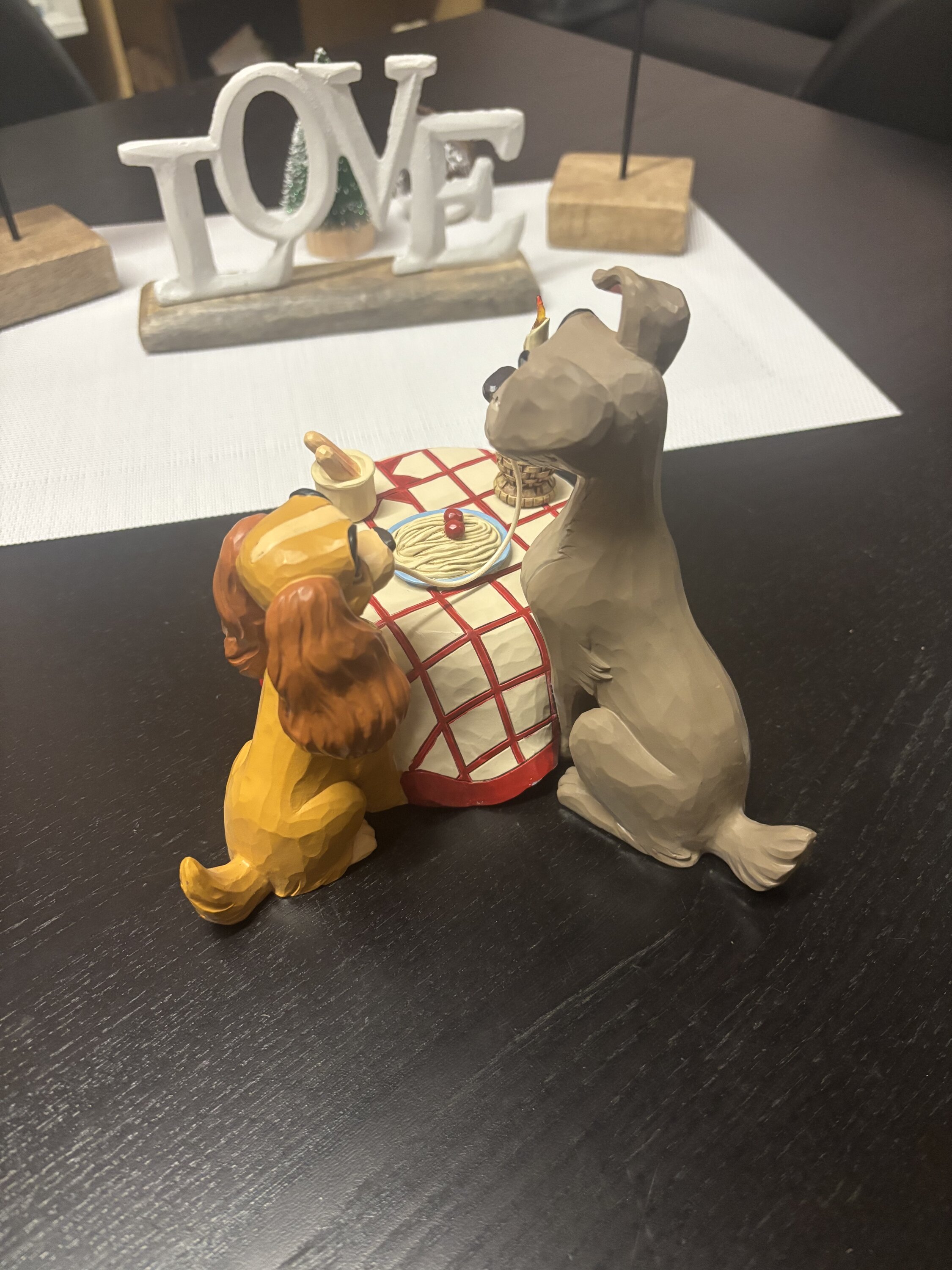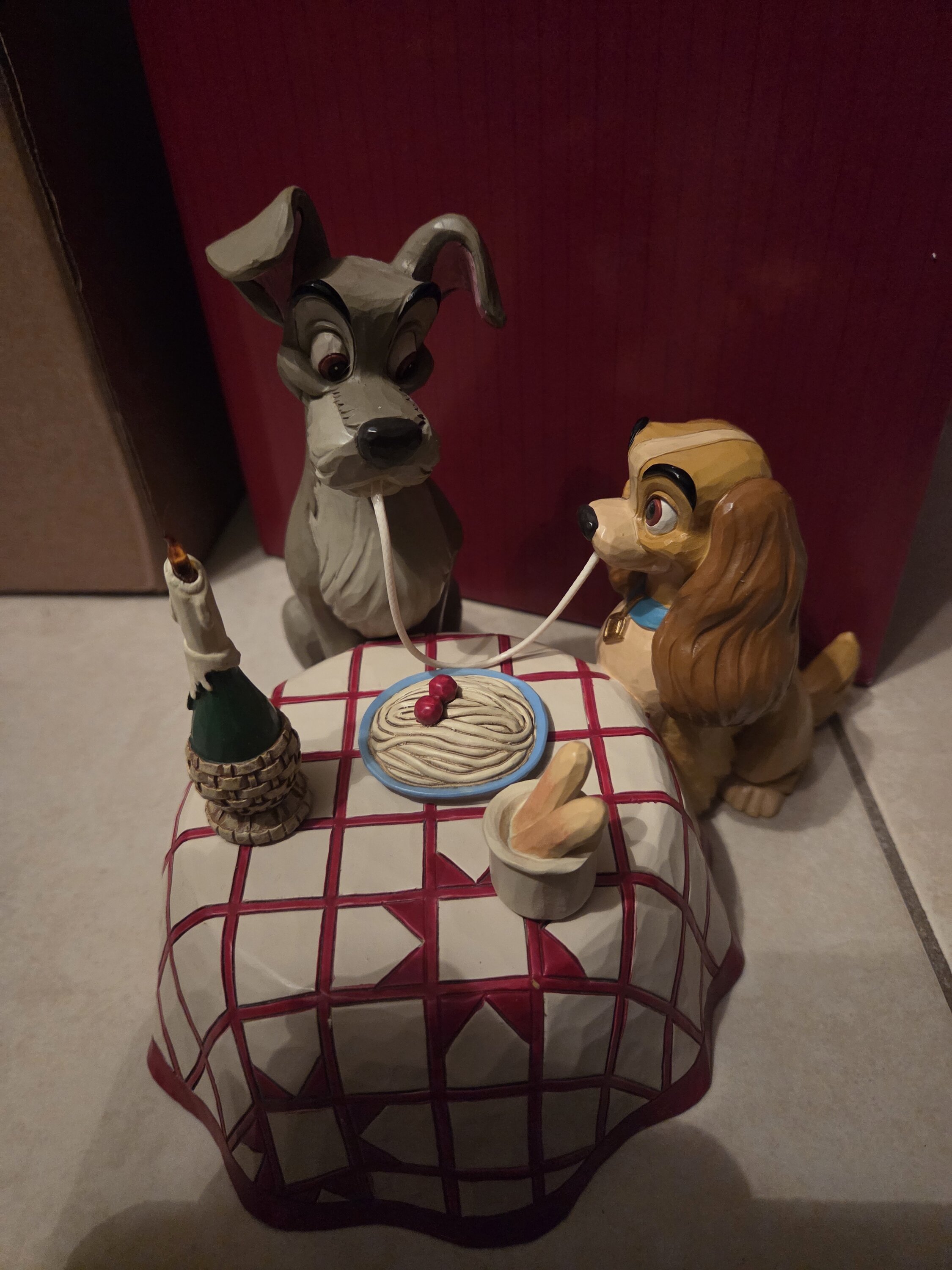 Très belle figurine représentant la scène mythique du film La Belle et Clochard au restaurant italien ♥️. On adore.🥰